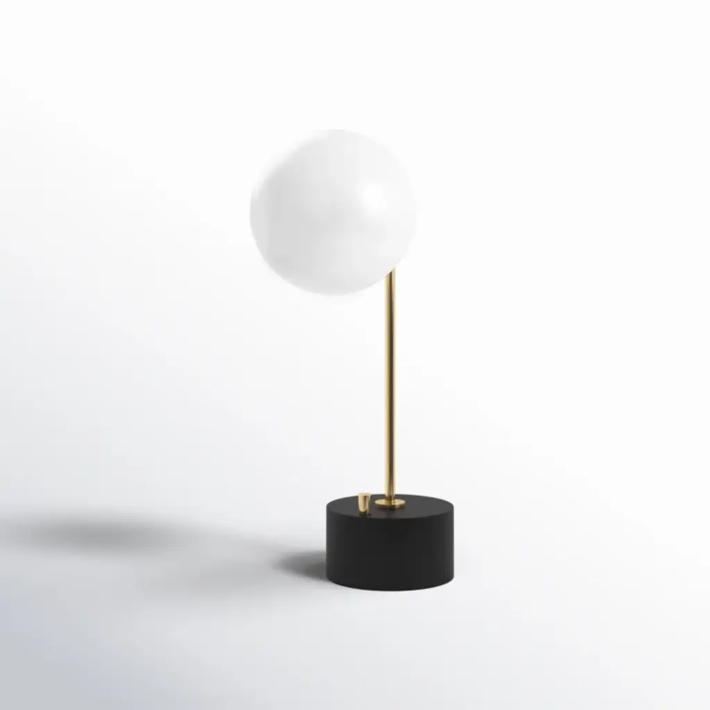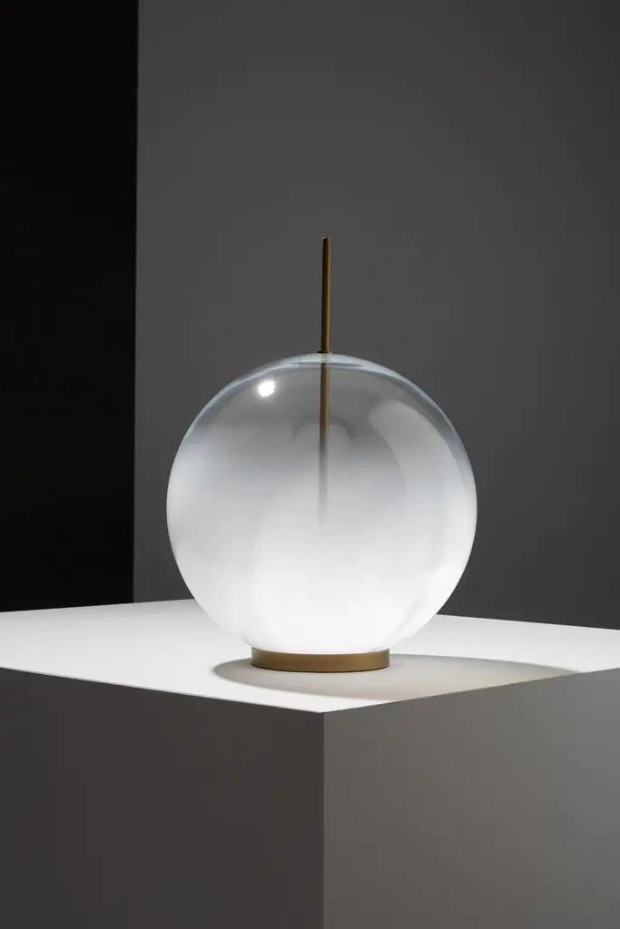 Table lamp with diffused light. Natural burnished brass structure and white blending blown glass diffuser.Location: InteriorLight Source: 1×9W LED 18V 880lm 2700°K CRI90Voltage: 110 - 120 V / 220 - 240 VFrequency: 50 - 60 HzSwitching: Dimmable with dimmer touchBallast: Dimmable ballast includedMounting: TableCable Length: 190cm-75"Supply: Power Cord.