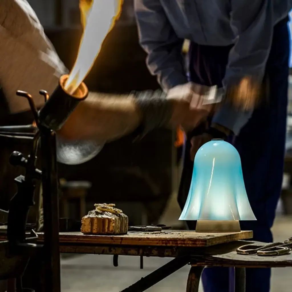 The Venini Fantasmino LED Table Lamp from Venini pays tribute to the 15th-century Opalino technique through modern portability. This 2022 design draws inspiration from the iconic 1948 Fazzoletto vase, adapting its fluid movements for contemporary spaces. Italian artisans hand-shape each piece in Murano, maintaining their heritage while advancing the craft. Perfect for study nooks or intimate gatherings, it introduces artistic illumination to any setting. The lamp's adaptable nature makes it equally at home in modern apartments or traditional houses.