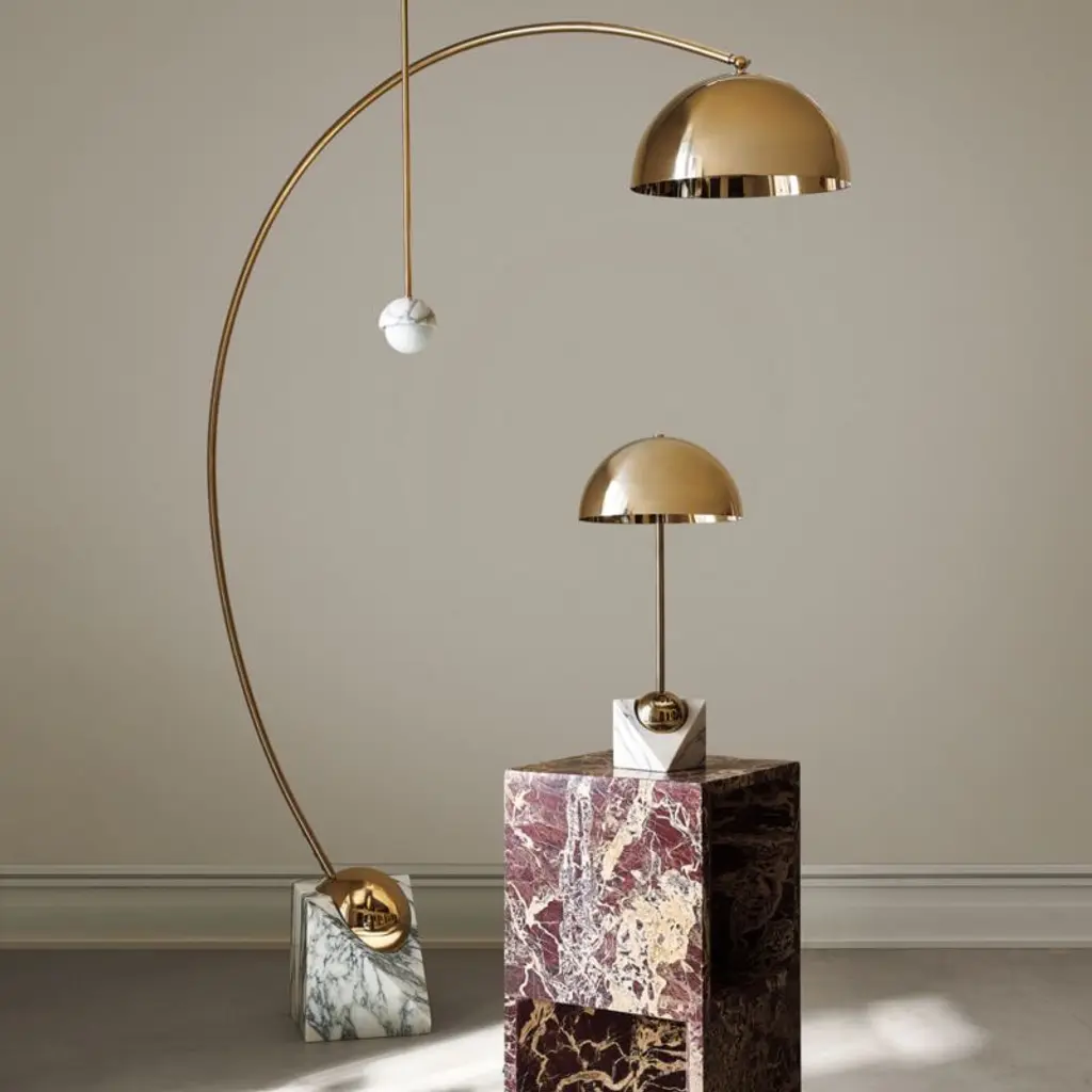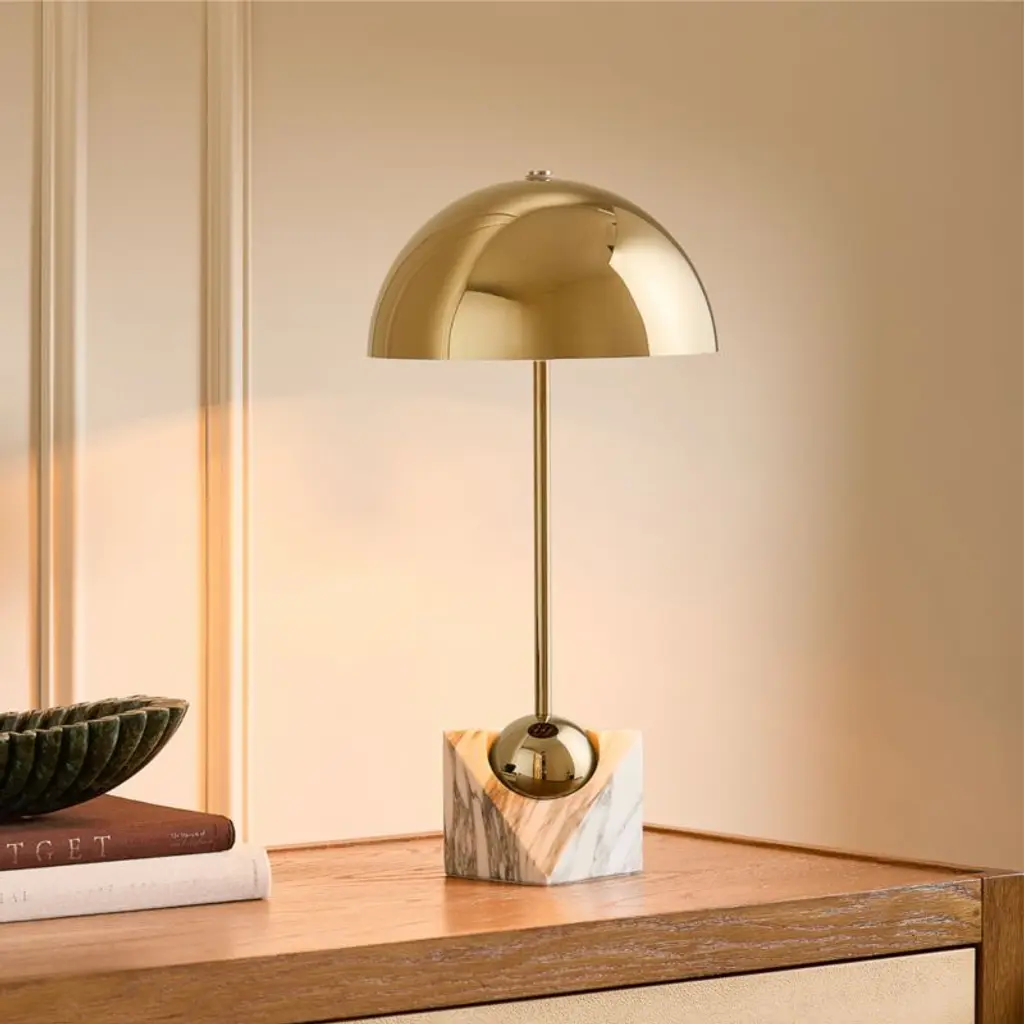 Venus Champagne Brass Metal Dome Table Lamp With White Marble Base