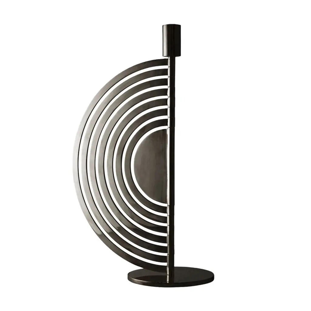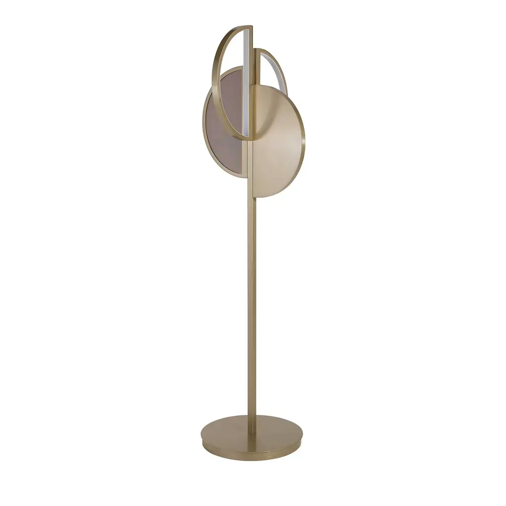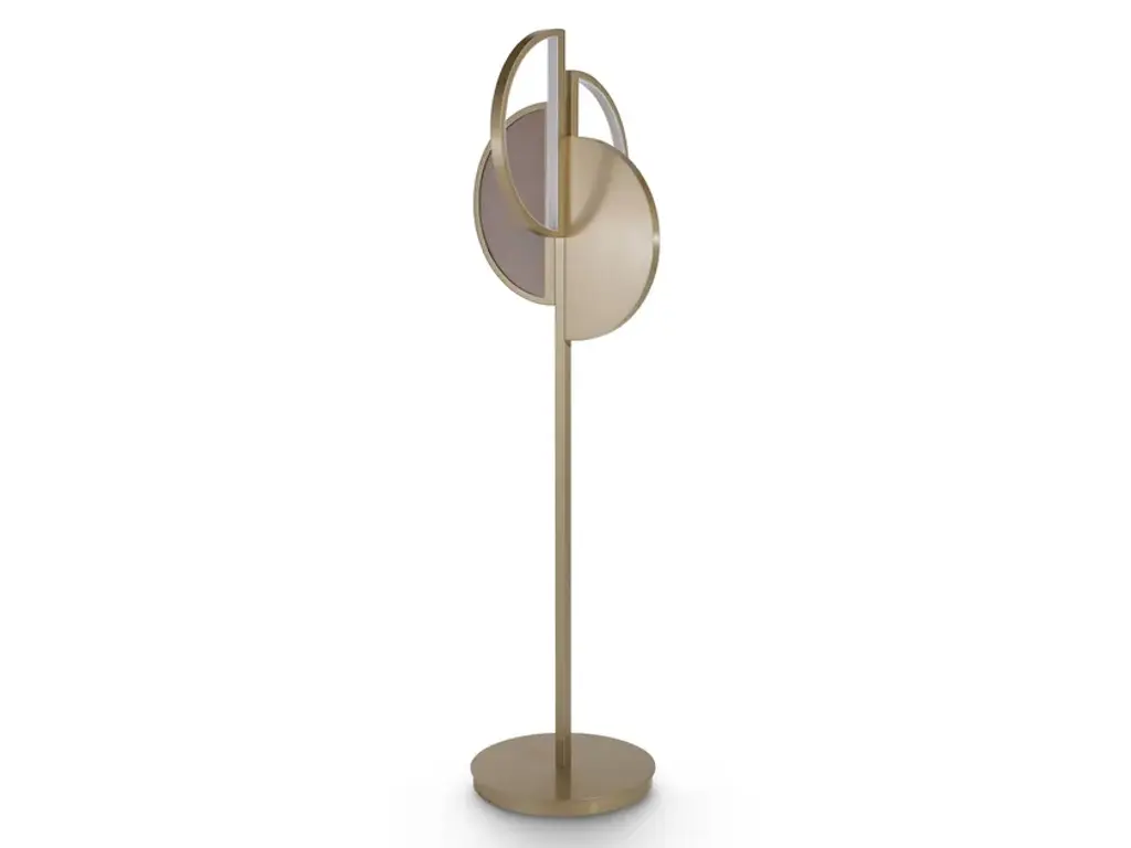 This table lamp, characterized by a brass frame and half-spheres in backlit foam glass, spread a warm and mood lighting in the environment around.