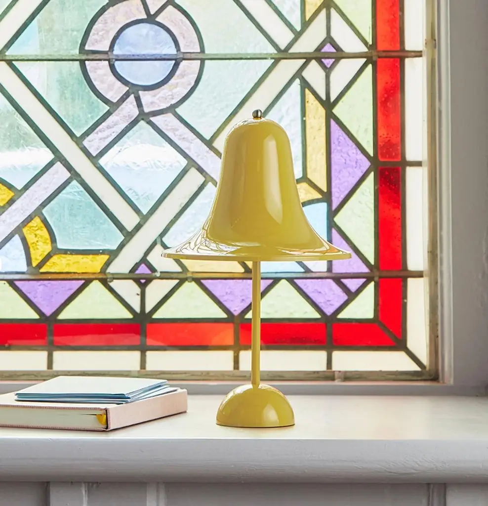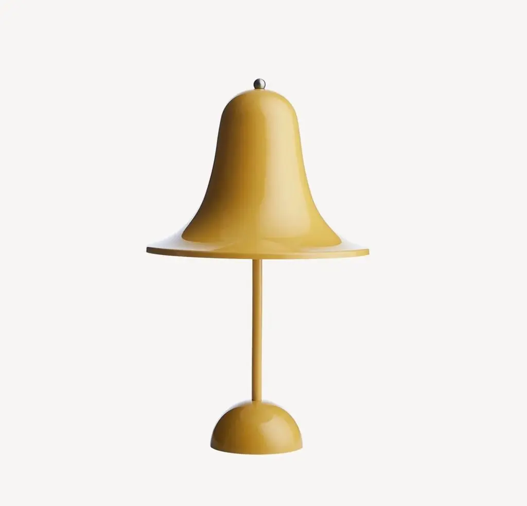 Verner Panton 'Pantop Portable' table lamp in 'Dusty Rose' for Verpan. Designed in 1980. New, current production.This is a versatile smaller and wireless version of the 'Pantop' table lamp, usb-chargeable. The elegant Pantop line was designed by Verner Panton in 1980, and has for a long time been a staple of the Verpan collection. Pantop is characterized by a bell-like, widely flaring shade which is mounted with the aperture facing down. The new Pantop Portable is a modern version of the Pantop design that uses modern materials and technologies. Something that Panton himself always sought.Pantop Portable adds a level of ease of use and flexibility that allows you to take the light with you - from room to room, and create the desired atmosphere wherever you are. With seven hours of operating time, Pantop Portable allows you to enjoy the flexibility of light for an entire evening where there is no access to power. The three-stage dimmer allows you to adjust the light level to the desired atmosphere and setting.Verner Panton (1926-1998) was an inspirational and colourful personality. A unique person with a special sense of colours, shapes, light function and room. Over the course of his career, Verner Panton (1926-1998) introduced a series of modern lamps with personalities unlike any of his Scandinavian contemporaries. With a remarkable faith in the unlimited possibilities of the form, he worked successfully to create a new set of theories about how lighting should work and how it should influence its surrounding.