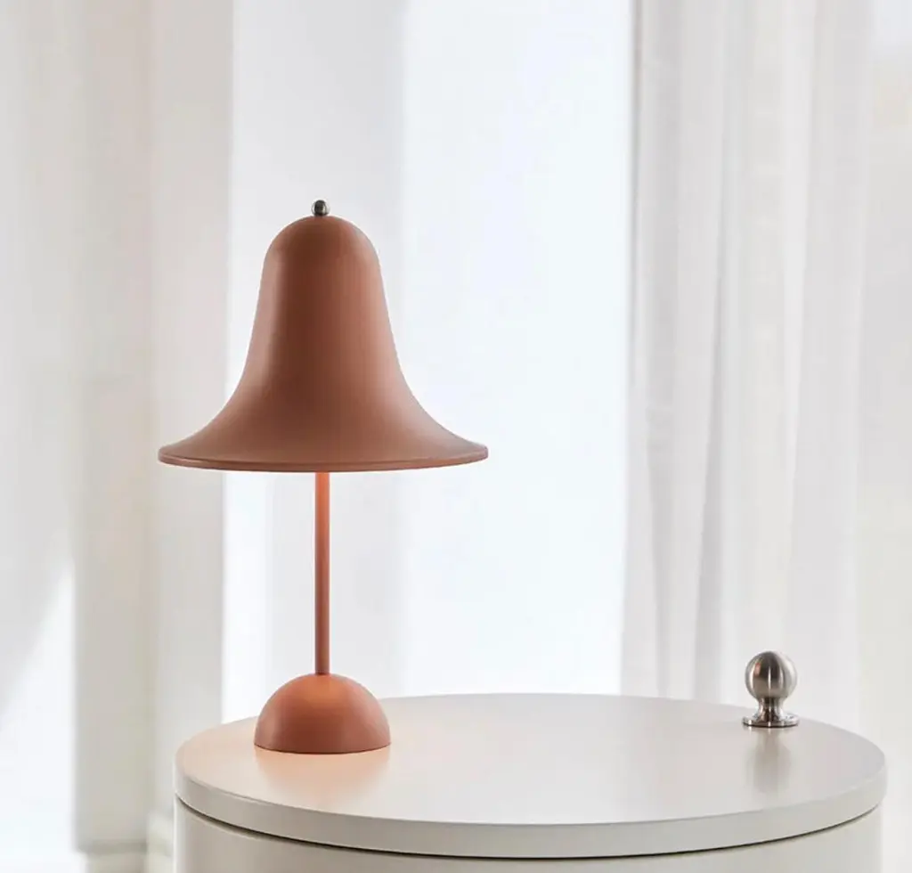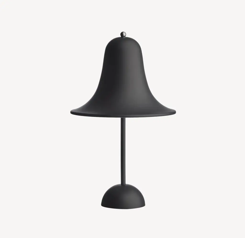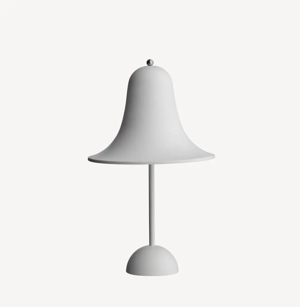 Verner Panton 'Pantop Portable' table lamp in 'Matt White' for Verpan. Designed in 1980. New, current production.This is a versatile smaller and wireless version of the 'Pantop' table lamp, usb-chargeable. The elegant Pantop line was designed by Verner Panton in 1980, and has for a long time been a staple of the Verpan collection. Pantop is characterized by a bell-like, widely flaring shade which is mounted with the aperture facing down. The new Pantop Portable is a modern version of the Pantop design that uses modern materials and technologies. Something that Panton himself always sought.Pantop Portable adds a level of ease of use and flexibility that allows you to take the light with you - from room to room, and create the desired atmosphere wherever you are. With seven hours of operating time, Pantop Portable allows you to enjoy the flexibility of light for an entire evening where there is no access to power. The three-stage dimmer allows you to adjust the light level to the desired atmosphere and setting.Verner Panton (1926-1998) was an inspirational and colourful personality. A unique person with a special sense of colours, shapes, light function and room. Over the course of his career, Verner Panton (1926-1998) introduced a series of modern lamps with personalities unlike any of his Scandinavian contemporaries. With a remarkable faith in the unlimited possibilities of the form, he worked successfully to create a new set of theories about how lighting should work and how it should influence its surrounding.