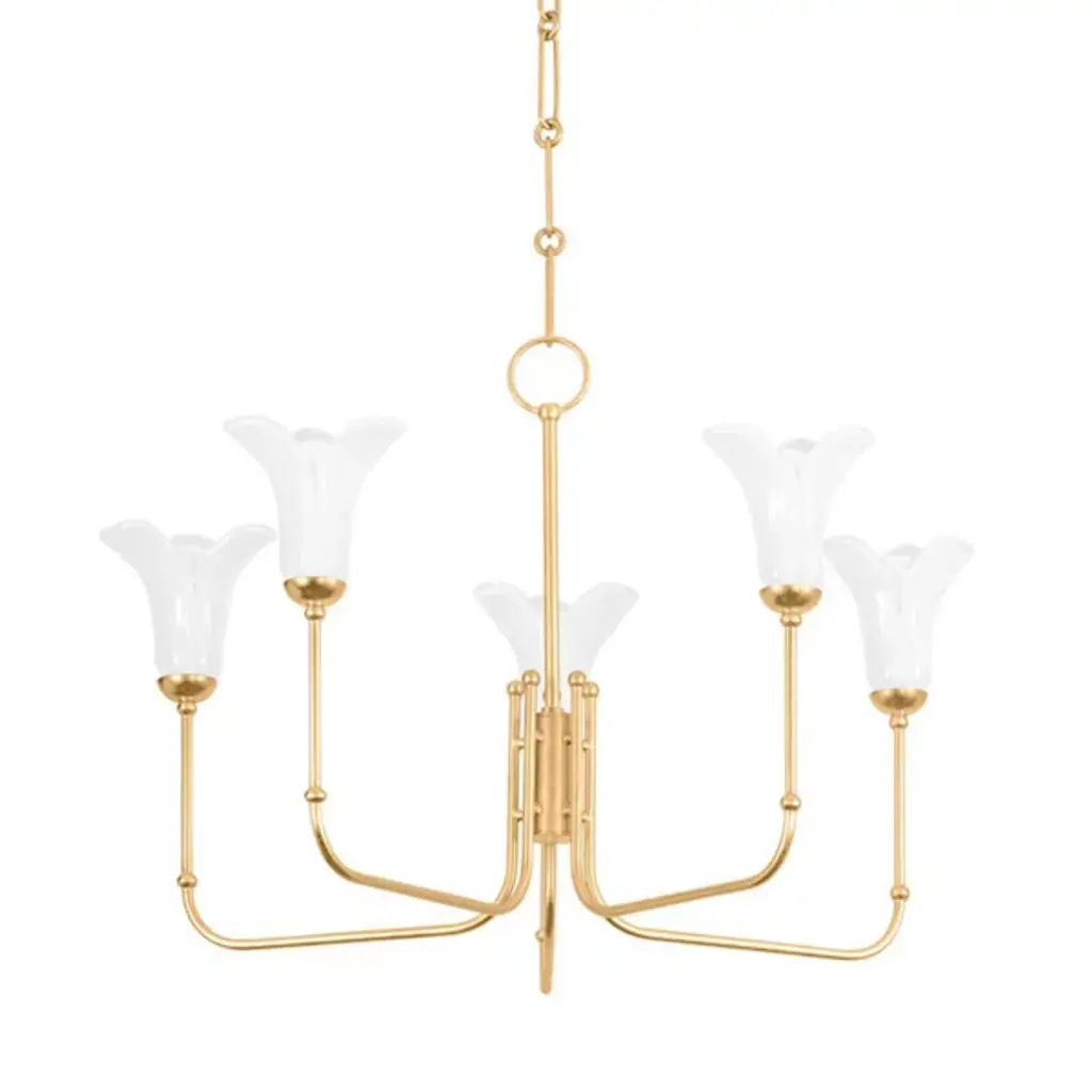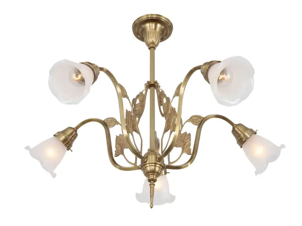 Verona 5 is a 5-arm chandelier made of brass available in different finishes.Finishes: Antique, Shiny brass, Matt brass, Shiny nickel, Matt nickelCapacity: max. 5x75W E27The VERONA lamps boast bucolic decor and flower shaped shades. They are less opulent and fit wonderfully into every small-scale environment.