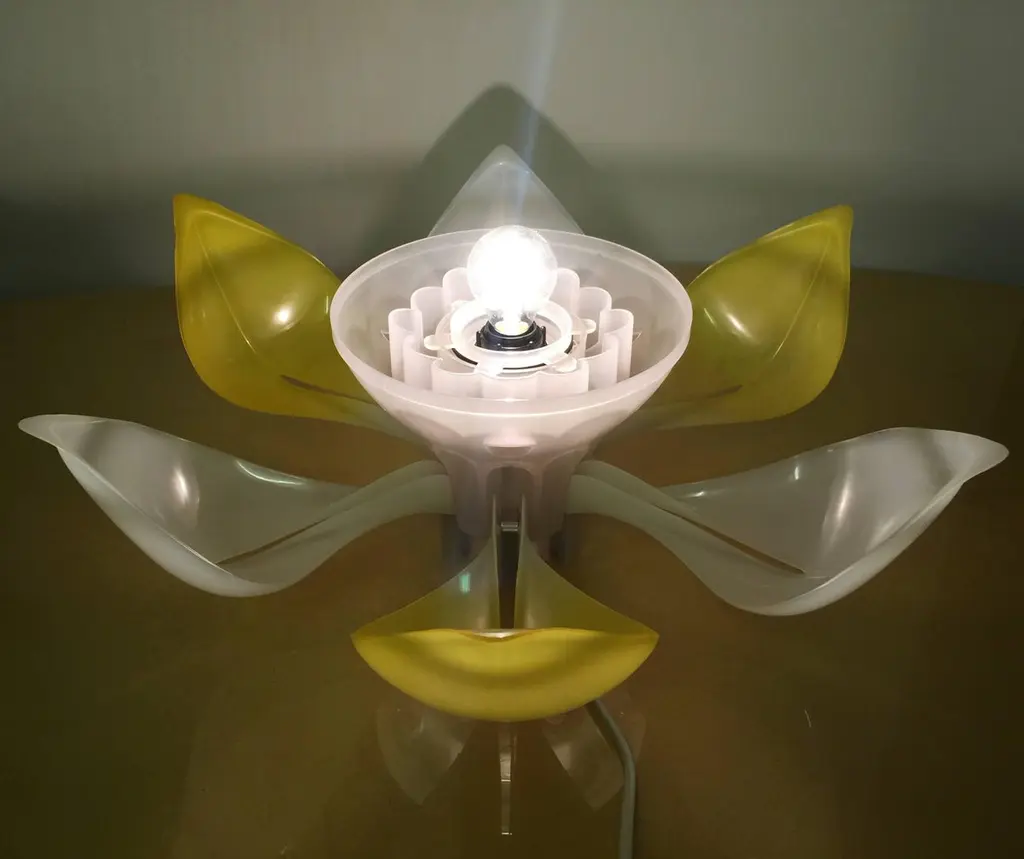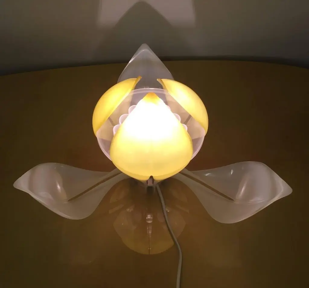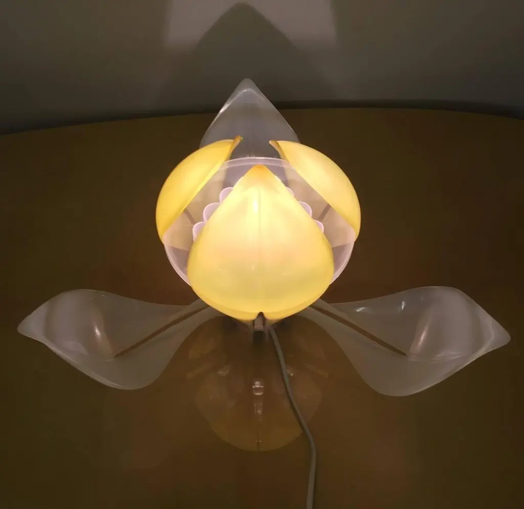 Very rare table lamp in form of a flower with adjustable leaves. Only made in limited quantities. We can offer 2.