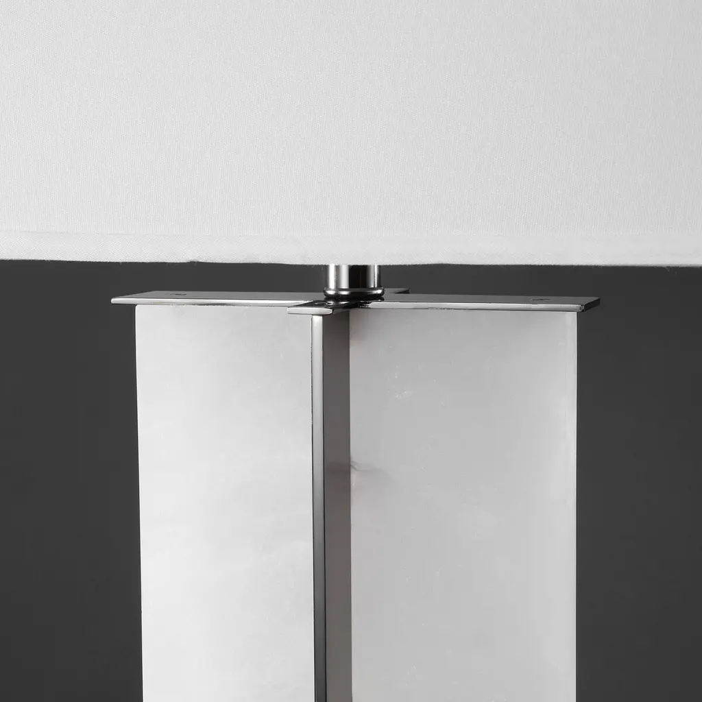 Grace your tabletop with the elegance and charm of our Vessa table lamp. Clean lines and sleek proportions accentuate the graceful stature of our table lamp. Its marble base is elevated with a gleaming accent for a polished and sophisticated look. Completed with a white tapered shade, our table lamp serves as a modern and versatile addition. It filters a warm and soft glow to add timeless glamor to your nightstand, console, or side table.