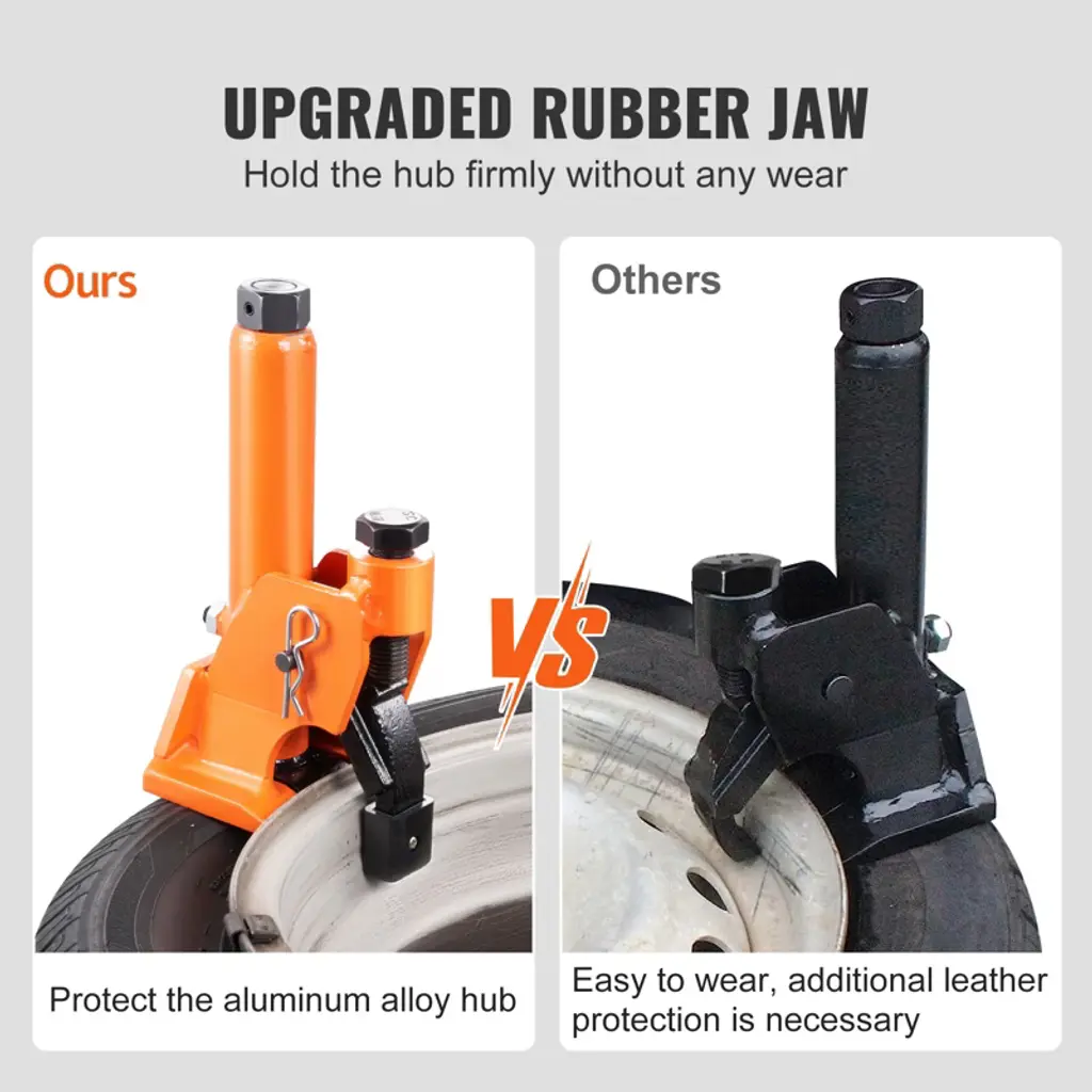 Feature: Versatile and Efficient: VEVOR manual tire bead breaker is your go-to tool for effortlessly handling tires up to 42 inches. It's perfect for a wide range of vehicles, including family cars, SUVs, trucks, tractors, lawnmowers, ATVs, RVs, and more, making it an essential tool for any tire-related task. Protective and Hub-Friendly: Featuring an upgraded rubber pad on the front paw, this enhances grip while no need for additional leather to protect the wheel hub. It effectively safeguards the wheel surface, including aluminum wheels. And it is securely gripping rims of various sizes with a sturdy footing. Sturdy and Long-Lasting: Crafted from durable #45 heat-treated steel, our tire bead breaker is engineered for long-lasting performance. The integrated screw, spindle, and front paw design ensures a heavy-duty and solid structure, while the high-quality electrophoresis process provides excellent rust and corrosion resistance. This bead breaker tool is built to withstand the test of time and handle the toughest disassembly tasks. Efficient Two-Step Operation: Say goodbye to complicated tire disassembly procedures. Our bead breaker provides a simple two-step operation. Just use an open wrench, impact wrench, or air ratchet wrench to adjust the front paw and securely clamp the hub. Then, adjust the drive screw to apply pressure on the telescopic foot, allowing you to easily separate the tire by repeating the operation in 2-3 positions on the tire. Compact and Portable: Designed to be lightweight at 11.5 lbs, this tire bead breaker is easy to handle and won't add unnecessary weight during tire removal. Its small size ensures it won't take up much space and allows for convenient storage in your garage or easy transportation to different work areas. Package Content: 1 x Tire Bead Breaker