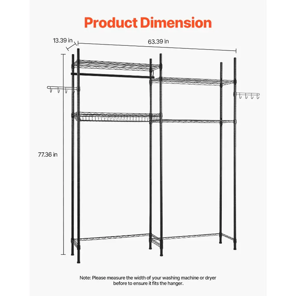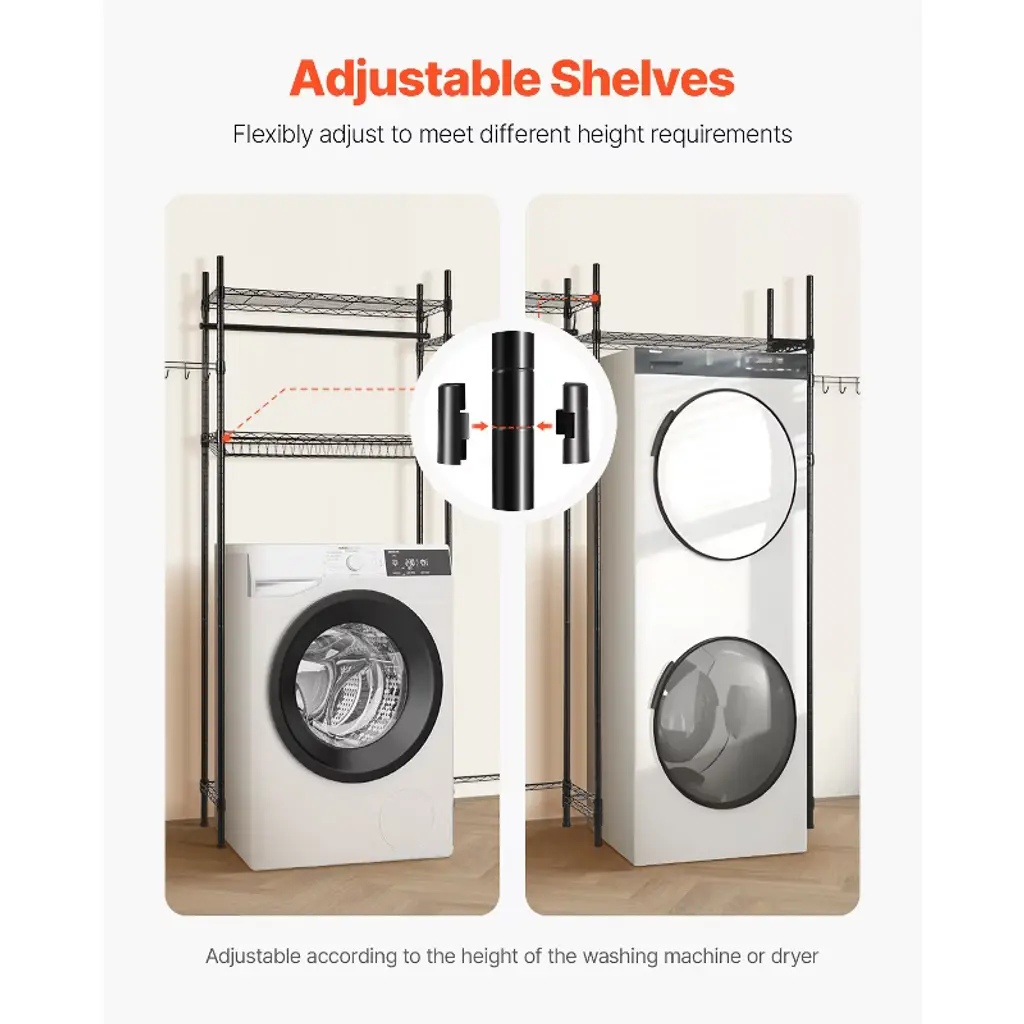 Vevor Over Washer And Dryer Storage Shelves, 4 Tiers Laundry Room Drying Rack With Hanger Rod And Hooks, Two Rows Washer Shelves Space Saver, Black