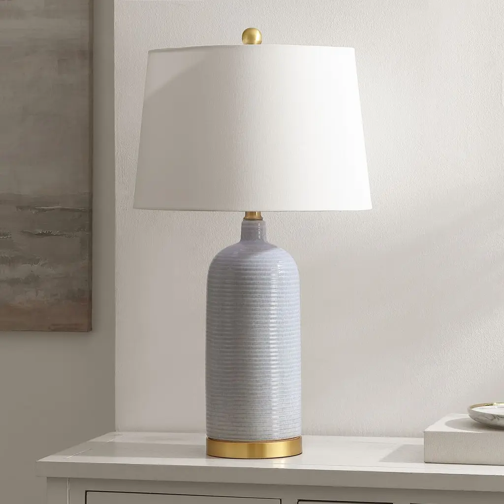 Introducing the Veyan 27 inch ceramic table lamp, a perfect blend of style and functionality. Its elegant design makes it an ideal addition to any room, enhancing your decor with a touch of modern charm. The lamp features a sturdy construction with a ceramic body and iron base and neck, ensuring stability and a sleek appearance. Equipped with a practical E26 socket, it's adaptable to a variety of lighting needs. Whether gracing your living room, bedroom, or office, the Veyan table lamp offers both aesthetic appeal and practical use. The smooth lines and subtle finish make it a versatile piece, effortlessly complementing different interior styles. Transform your space with the gentle illumination and sophisticated design of this exquisite lamp.