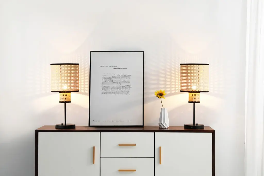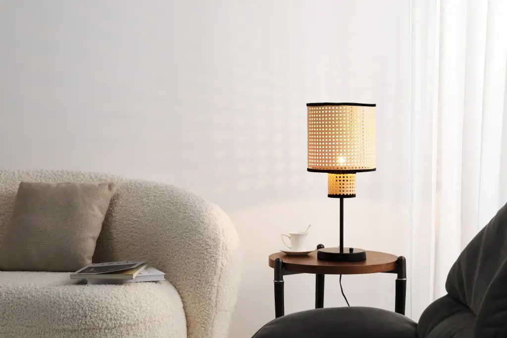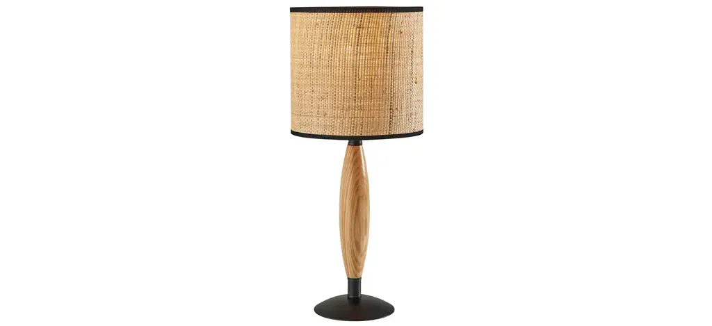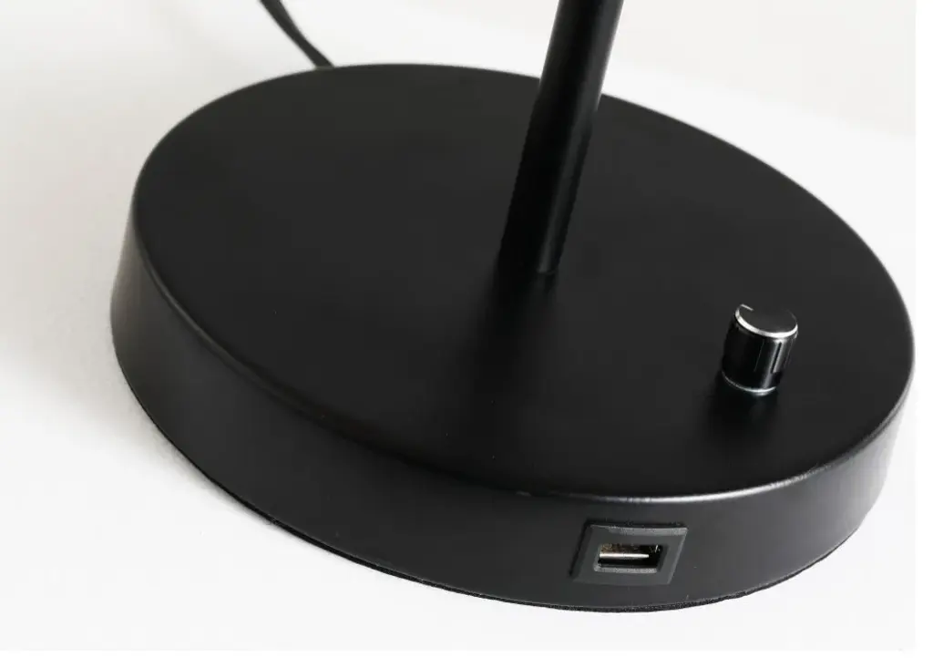 Looking to add a unique light fixture to your home? Look no further than the Nakuv table lamp. Bohemian meets modern design in the rattan-style PVC lamp shade with velvet accents stitched around the rims. Sleek and functional, the black metal base includes a USB port for charging your phone, tablet or other small devices. This lamp is the ideal addition to any modern, transitional or bohemian home, and is perfect for living rooms, bedrooms or home offices. For a warm and inviting look, we recommend using a warm colored or vintage bulb. Bulb not included.Wattage: 60Bulb type: E26Number of bulbs: 1Bulbs(s) not included