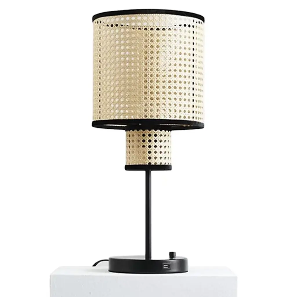 Vidalite Nakuv Rattan And Velvet Table Lamp With Usb Port