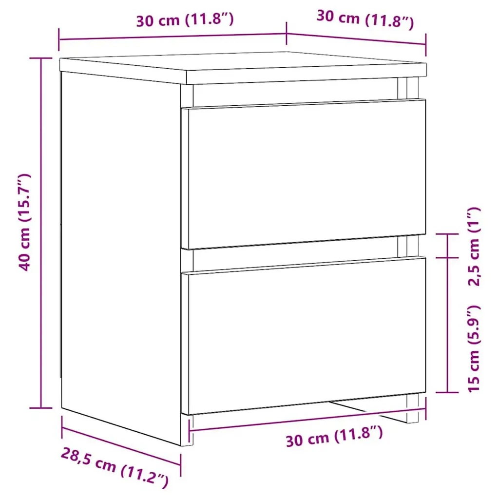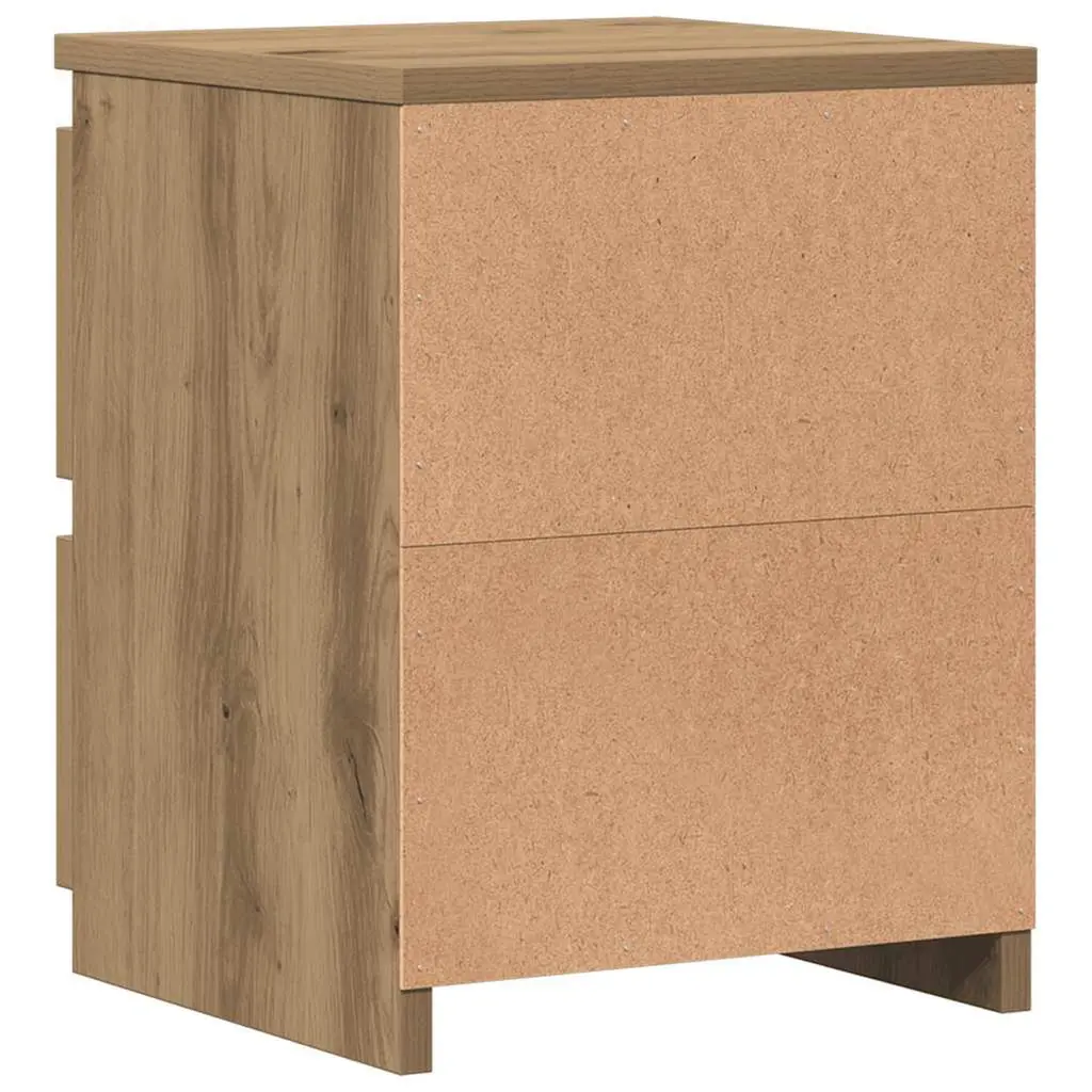 This bedside cabinet perfectly combines functionality and style, enhancing your bedroom with a modern touch. The compact size of 11.8 x 11.8 x 15.7 in makes it just right for small areas, while the artisan oak finish adds warmth and elegance, ideal for holding your bedside essentials like a lamp, clock, or book. Ample Storage: With two roomy drawers, this cabinet offers enough space for all your nighttime essentials. Its designed areas let you easily organize and grab your things, making your nightly routine smooth and stylish. Modern Design: The contemporary aesthetic, with clean lines and smooth surfaces, fits brilliantly with various interior styles, from industrial to classic. Durable Build: Crafted from engineered wood, this cabinet is made to last, resisting wear and tear while keeping its great look over time. Easy Maintenance: The smooth finish means cleaning is a breeze, just a damp cloth is all you need to keep it looking sharp. Versatile Use: This cabinet's not just a bedside partner; it works perfectly in living spaces or hallways for extra storage and display.