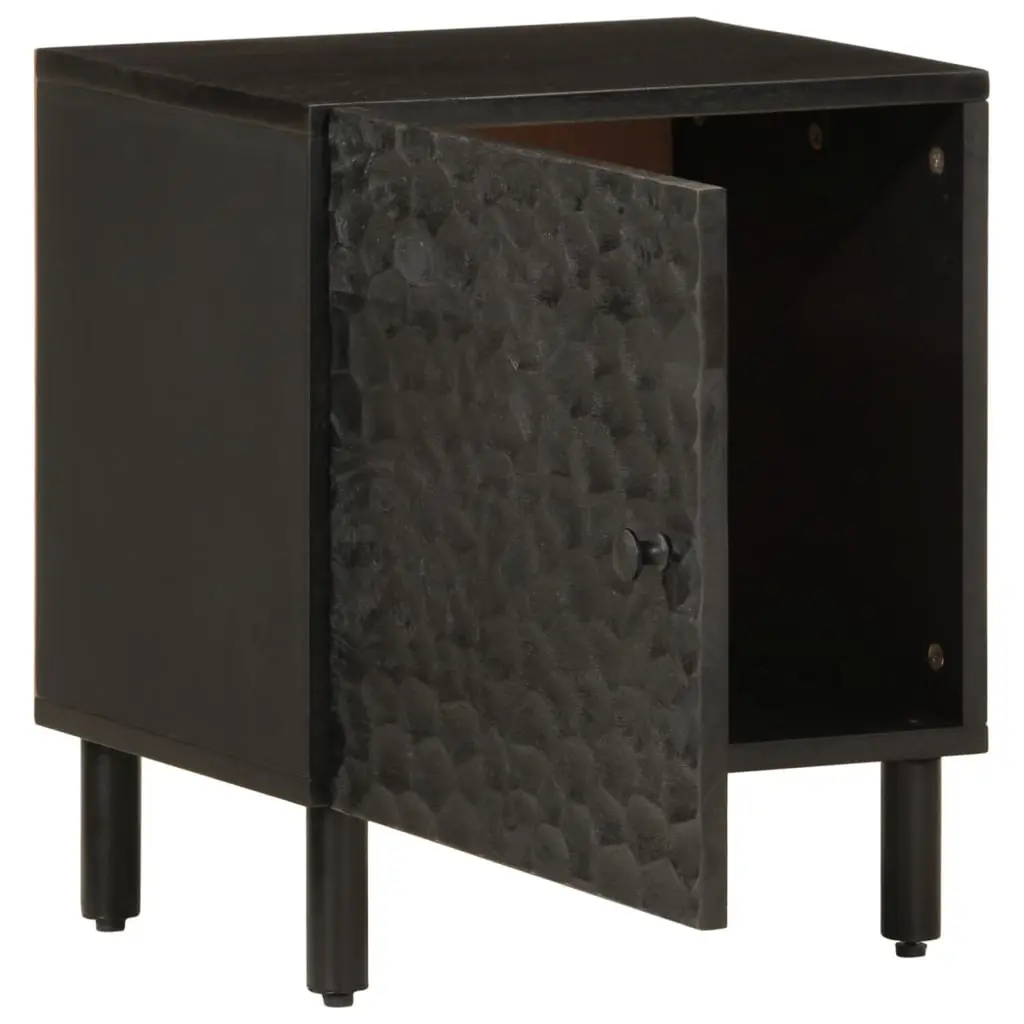 This bedside cabinet mixes practicality with modern style, making it a perfect accessory for your bedroom. Its sleek black finish and solid mango wood build give it a sophisticated look that can uplift any sleeping space. Durable Construction: Made from solid mango wood, this cabinet is tough and reliable for everyday use. The materials not only ensure durability but also bring a touch of elegance to your bedroom. Hinge Door Design: With a standard hinge door, this cabinet is practical and user-friendly, giving you easy access to your stuff while looking stylish. The door opens smoothly, so you can grab your items without fuss. Compact Dimensions: Measuring just 15.7 in long and 13.0 in wide, it fits neatly in your bedroom without hogging space—perfect for apartments or smaller rooms! Sleek Black Finish: The cabinet's smart black finish matches various color themes, making it a versatile addition to your bedroom décor. It not only looks modern but also showcases the lovely wood grain. Convenient Storage Solution: Standing 18.1 in tall, it's just right for storing books, lamps, or personal items. It works great as a bedside table, offering easy access to what you need from your bed.