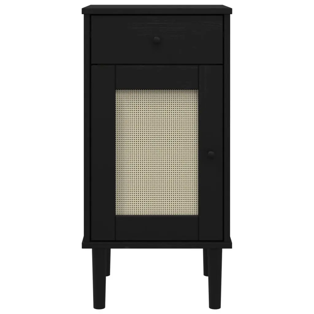 Vidaxl Bedside Cabinet Black Solid Pine Wood, Poly Rattan 31.5 In
