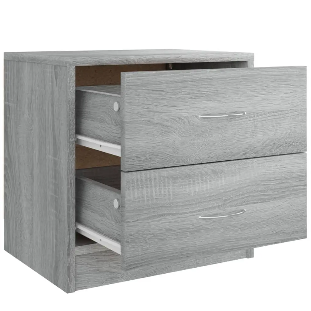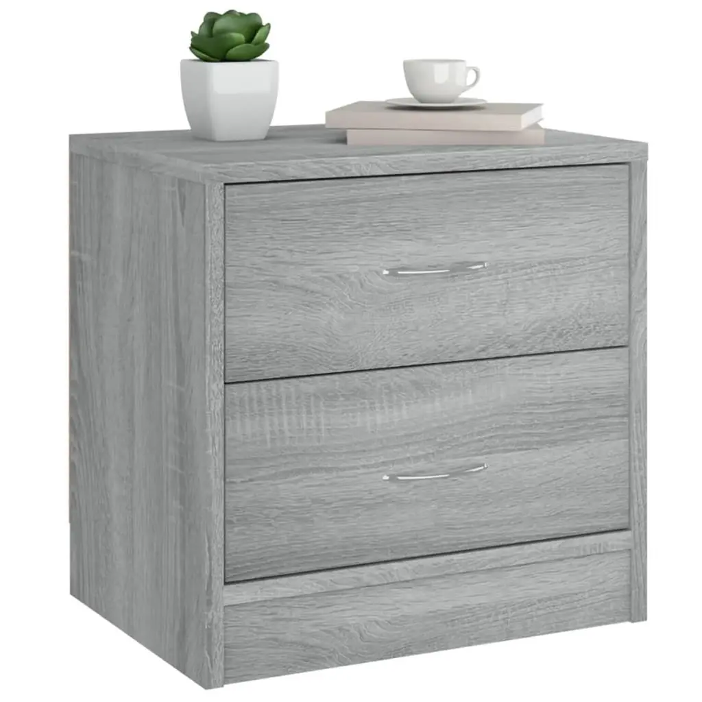 This bedside cabinet is the perfect addition to any modern bedroom, offering both style and functionality. Its chic Grey Sonoma finish fits in nicely with different bedroom aesthetics while giving you a practical spot for your essentials. Stylish Modern Aesthetic: The sleek matte grey finish not only enhances the overall look of your space but also complements other furniture pieces effortlessly, making your bedroom feel cohesive. This bedside cabinet offers a stylish spot for your lamp, clock, or personal items, giving you easy access.Two Durable Drawers: With two spacious drawers that move easily, this cabinet allows for clever storage options. You can stash away your bedtime essentials or any random items, keeping your bedside neat and tidy.Quality Engineering: Built from sturdy engineered wood, this bedside cabinet is made to last, providing durability that can handle daily use. Plus, its moisture-resistant features mean it won't wear down easily.Versatile Use: Not just for bedrooms, this cabinet can also double as a chic end table or phone stand in your lounge, adapting to your home seamlessly. Its trendy design will enhance any space it’s in.Compact Size: With a height of 15.7 in. and width of 11.8 in., this cabinet is just right for smaller rooms. Its standard size makes it a solid choice for apartments or cozy spaces where every bit of space counts.