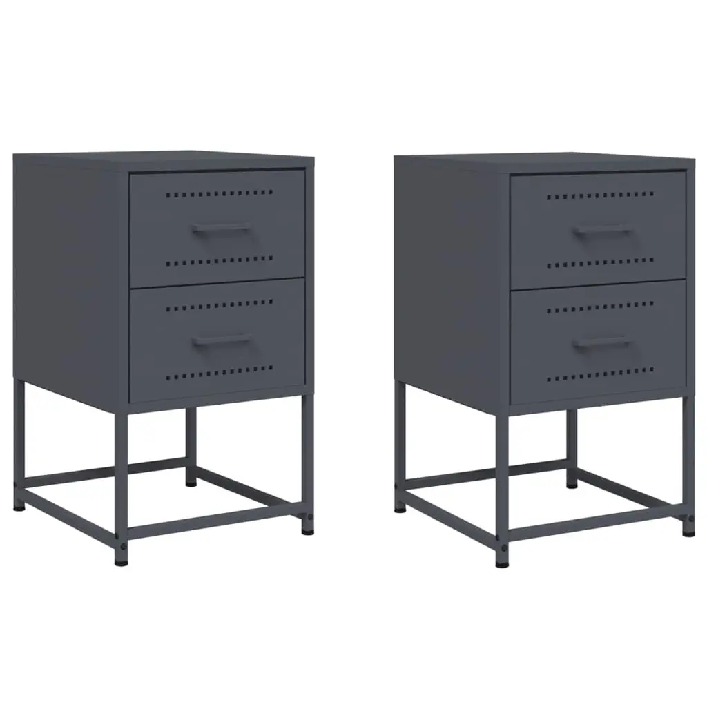 Vidaxl Bedside Cabinet Set Of 2 Anthracite Cold-Rolled Steel Medium
