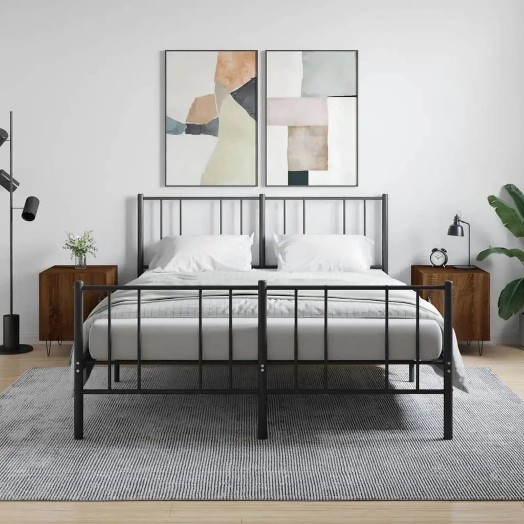 Vidaxl Bedside Cabinet Set Of 2 Brown Oak Engineered Wood And Iron