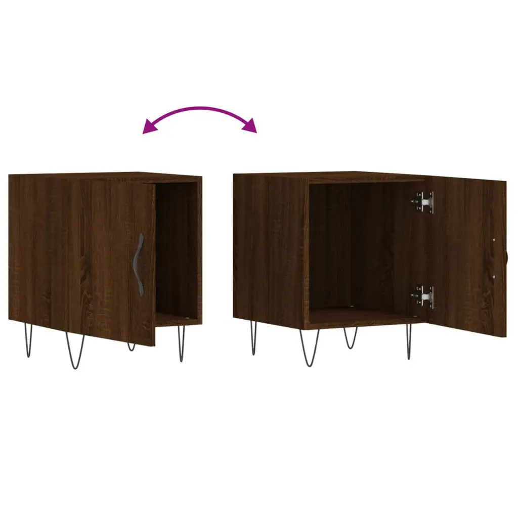 This lovely set of bedside cabinets is perfect for your bedroom or living room storage, making your home look even better. Made from engineered wood and sturdy iron legs, these modern cabinets are not just stylish but practical as well, great for holding lamps, books, or personal bits and bobs while adding a chic touch to your space. Stylish Design: The matte finish of the brown oak cabinets adds warmth and sophistication, making them a great fit for any decor.Durable Build: Made from top-quality engineered wood, these cabinets are solid and supported by iron legs for durability and modern style.Convenience: Each cabinet has a handy handle for quick access to your things, so everything's just a reach away.Versatile Use: Perfect for bedrooms, living rooms, or guest spaces, these cabinets work as nightstands or side tables, fitting various storage needs.Compact Size: Measuring 15.7 in x 15.7 in x 19.7 in, they fit snugly in smaller spaces while providing enough room for essentials.