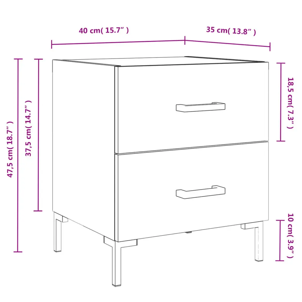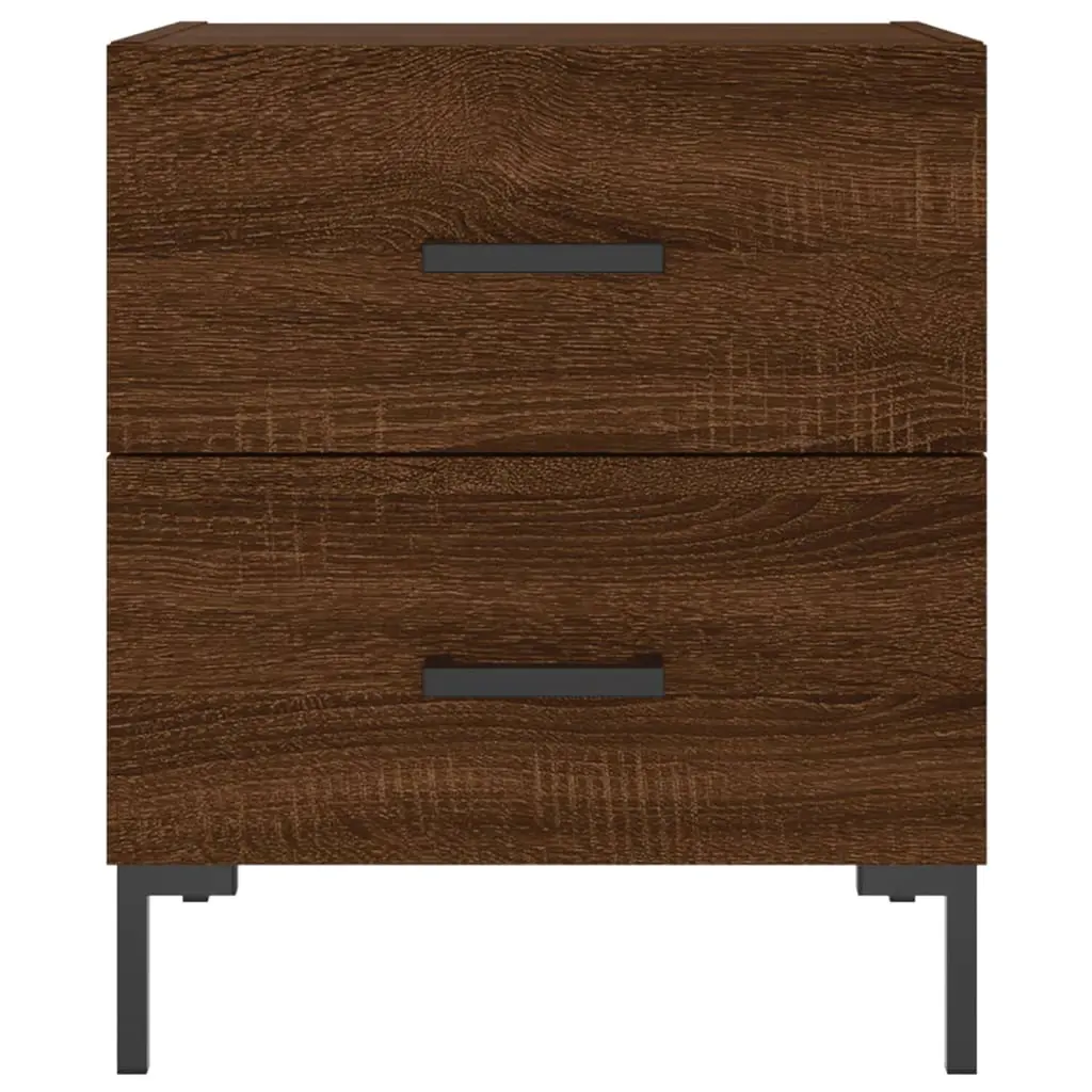 This smart set of two bedside cabinets brings a trendy touch to any bedroom. With their sleek lines and rich brown oak finish, they fit nicely in any decor, making your space feel warm and welcoming. Great for using next to a bed or sofa, they double as handy storage and stylish statement pieces. Ample Storage: Loads of room for books, lamps, and other bedside essentials, these cabinets feature two drawers that are perfect for keeping everything organized. The spacious tops are ideal for placing things like your alarm clock or personal items, making your nighttime routine a breeze.Durable Design: Made from top-notch engineered wood and iron, these cabinets are built to last. The sturdy structure ensures stability, letting you keep heavier items without worry.Stylish Finish: With a smooth matte look, these cabinets bring a sophisticated vibe to modern homes. The sleek surface not only looks great but is a breeze to clean, needing just a dry cloth.Versatile Usage: Perfect for bedrooms, these cabinets can also shine as side tables or accent pieces in living areas. Their trendy design fits right in with all sorts of styles.Compact Dimensions: Measuring 15.7 in long, 13.8 in wide, and 18.7 in tall, these cabinets are great for smaller spaces while still offering good storage. They’re a top choice for apartments or rooms where making the most of space is key.