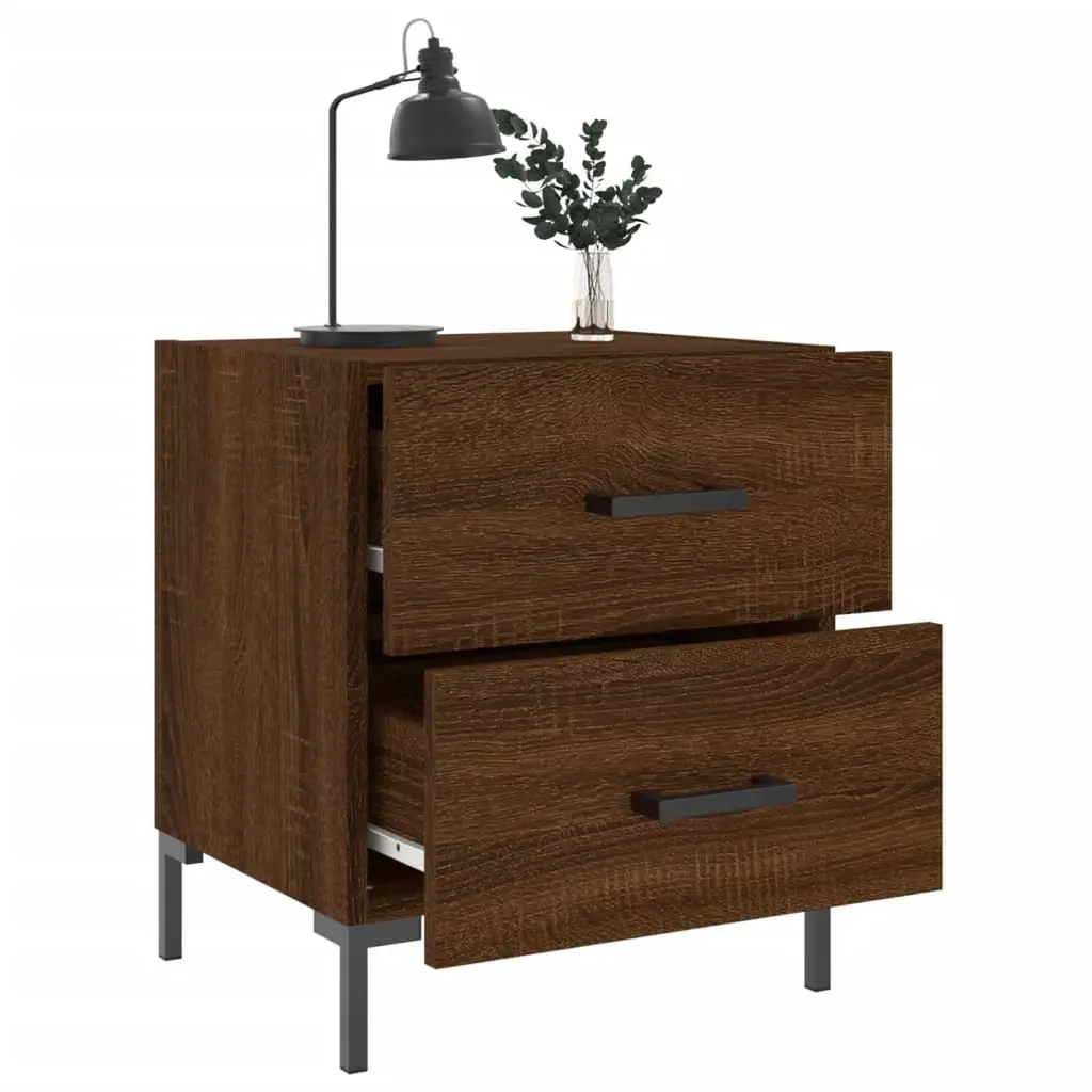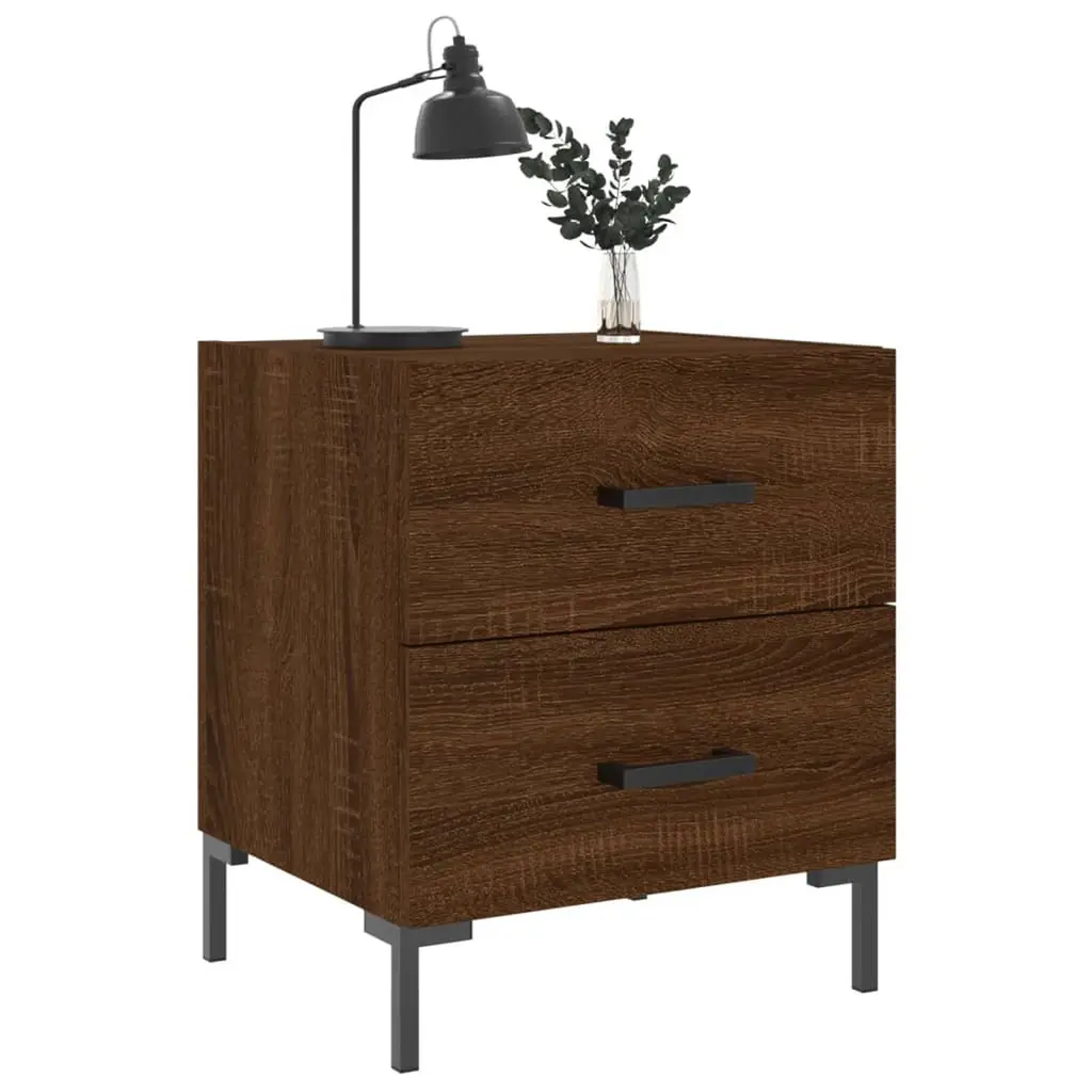 Vidaxl Bedside Cabinet Set Of 2 Brown Oak Engineered Wood, Iron