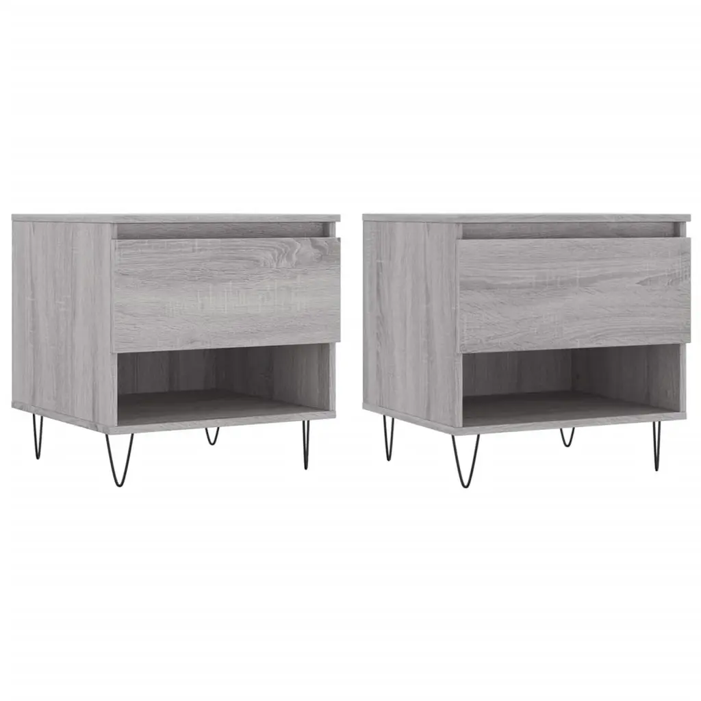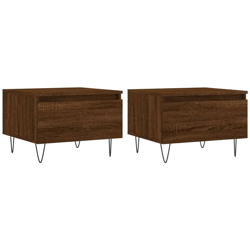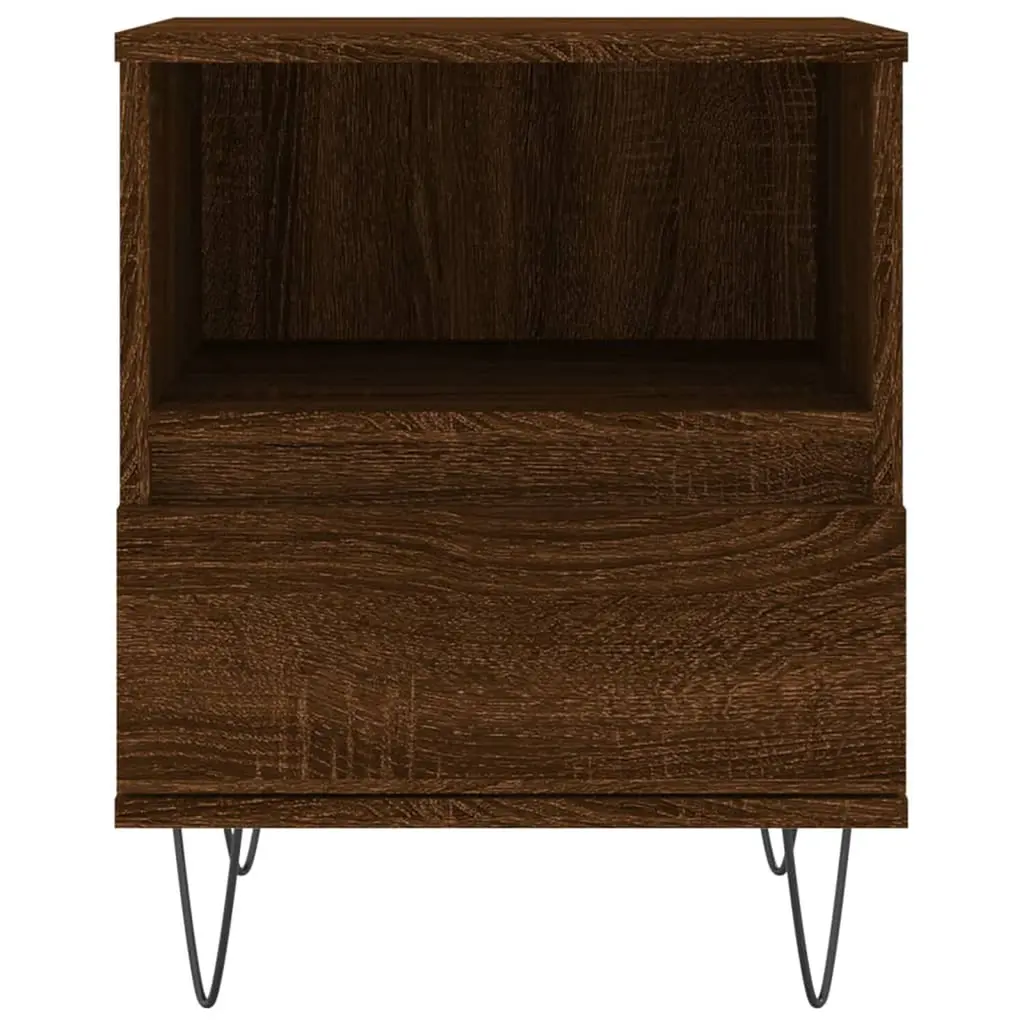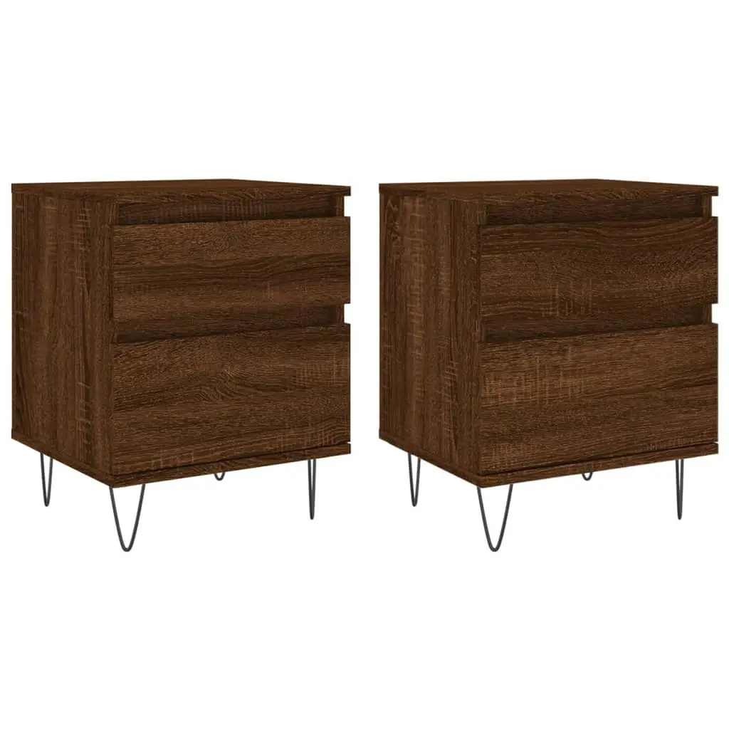 Vidaxl Bedside Cabinet Set Of 2 Brown Oak Engineered Wood, Metal Medium