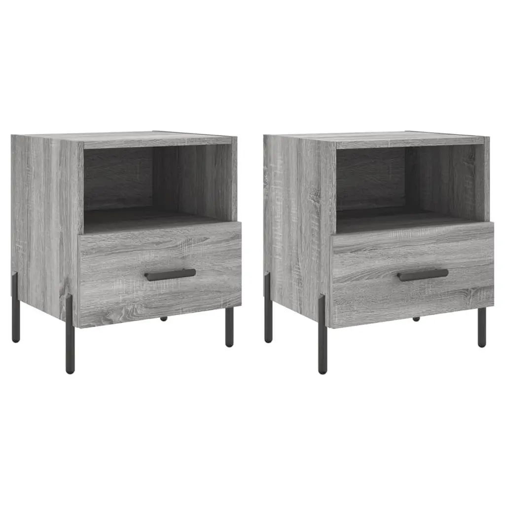 Vidaxl Bedside Cabinet Set Of 2 Grey Sonoma Engineered Wood, Metal