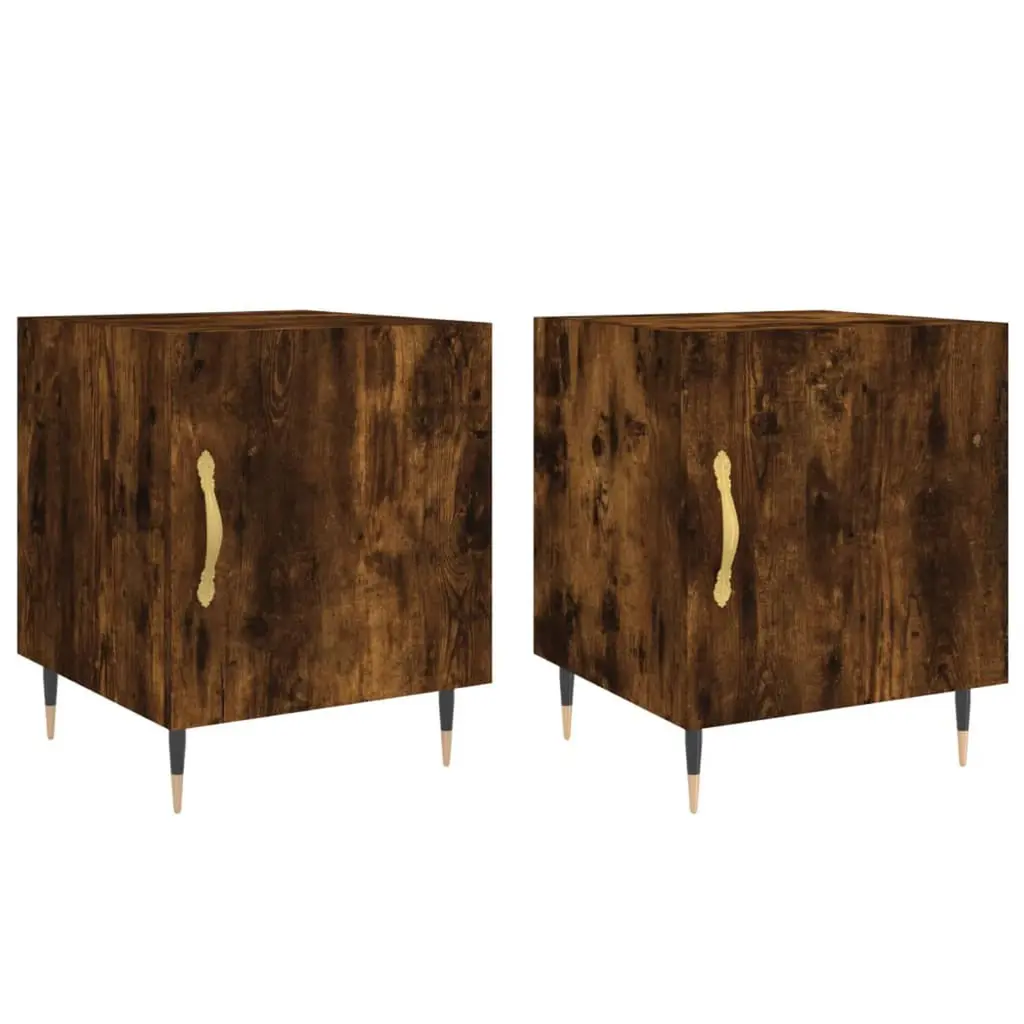 Vidaxl Bedside Cabinet Set Of 2 Smoked Oak Engineered Wood, Iron Medium