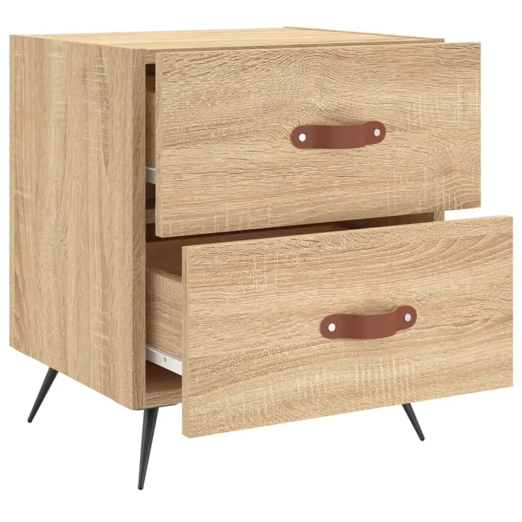This awesome set of Sonoma Oak Bedside Cabinets mixes function with modern style, making it a fab addition to your home. Made from top-notch engineered wood, these cabinets boast a sleek brown finish that exudes class, serving as a beautiful focal point next to your bed or in your living room while offering handy storage for your personal items. Sleek Storage: Each cabinet has two classic drawers for easy access to your things, making it easier to keep your bedroom or living room organized. The smooth handles let you open and close the drawers without a hitch, so your nightstand is both classy and super functional.Modern Aesthetic: These bedside cabinets sport clean lines and a contemporary look, making them a flexible pick for any decor. Whether you like a minimalist vibe or mix styles, these cabinets bring a chic yet subtle charm.High-Quality Construction: Made from durable engineered wood and strong iron, these cabinets promise to last while keeping their sleek look. The combo of materials makes sure they’re tough enough for everyday use while holding onto their modern flair.Heightened Versatility: Perfect for different spaces, these cabinets aren’t just for bedside use; they work well as small side tables in your living room too. Their compact size means they fit into smaller corners while still offering enough surface for lamps, books, or decorative bits.Simple Assembly: Built with ease in mind, the bedside cabinets come with clear assembly instructions and only need basic tools, so making your ideal setup is a piece of cake for anyone.