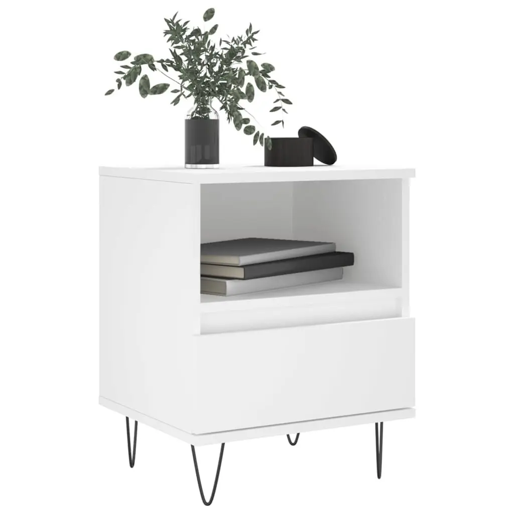 The Modern White Bedside Cabinet Set is a must-have for your bedroom, mixing functionality with modern design. Made from high-quality engineered wood, these cabinets boast a smooth surface in a striking white finish, perfect for syncing with your modern decor while offering stylish storage for all your bedtime essentials. 【Stylish Aesthetics】 The sleek white color adds a calm and modern touch to your bedroom, bringing a soothing vibe.【Functional Design】 With lots of storage space, each cabinet features one drawer and one open shelf, ideal for keeping books, lamps, and personal items organized.【Quality Craftsmanship】 Made from engineered wood, these cabinets are sturdy and have an attractive matte finish.【Versatile Placement】 Great for bedrooms, but they can also serve as end tables or telephone stands in living areas, making them a handy addition to your home.【Compact Dimensions】 Each measures 13.8 in in width, 15.7 in in length, and 19.7 in in height, perfect for smaller spaces without losing style or practicality.