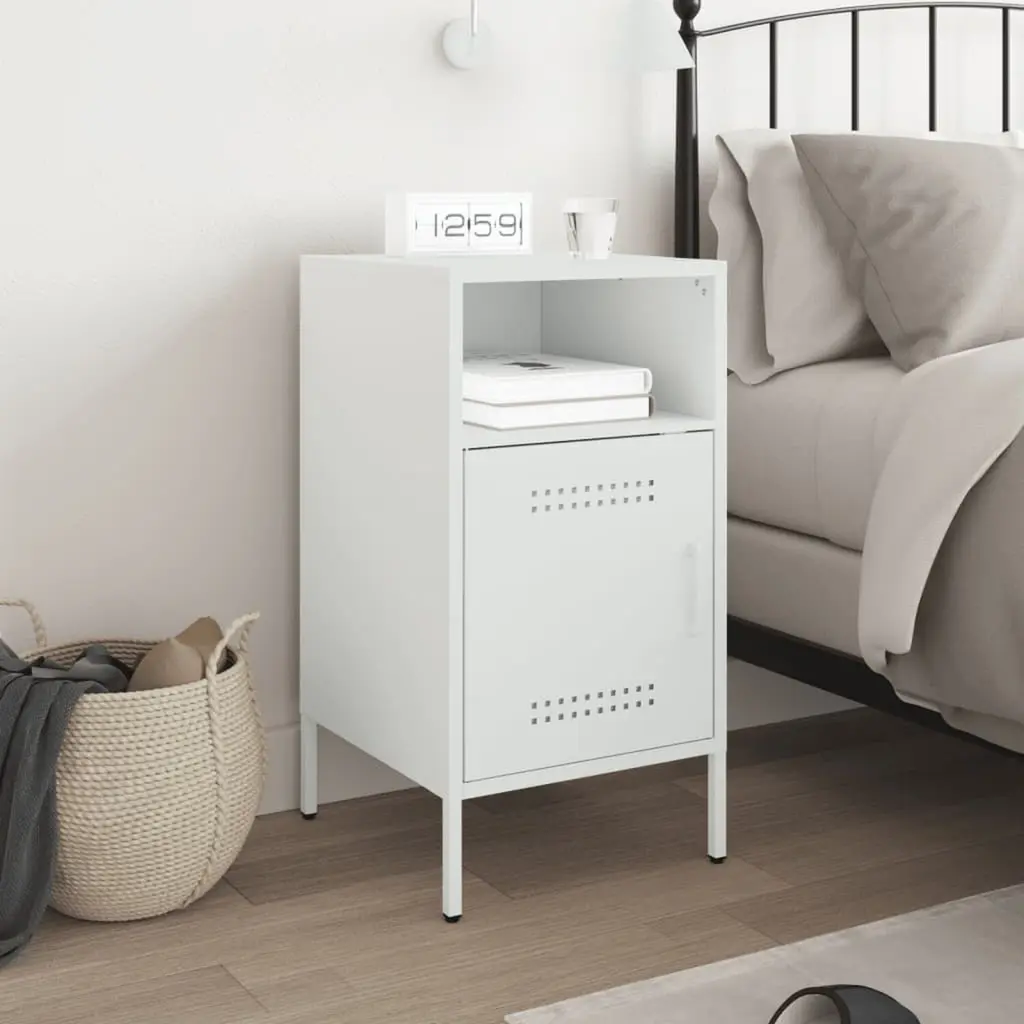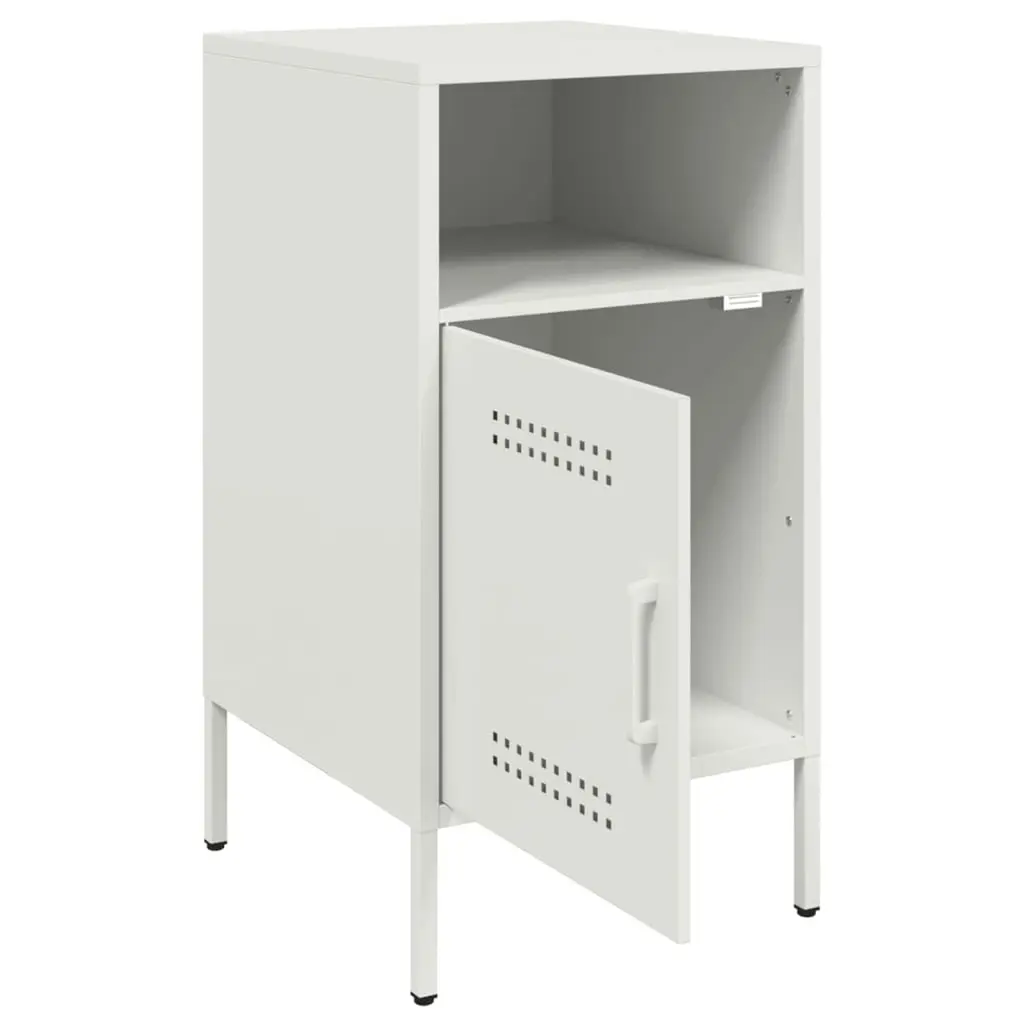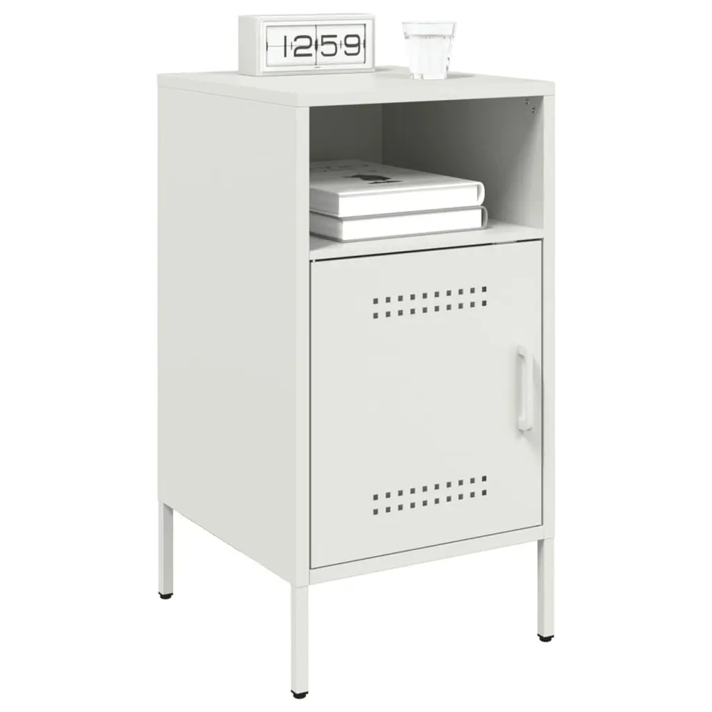 Vidaxl Bedside Cabinet White Cold-Rolled Steel Compact Adjustable Feet