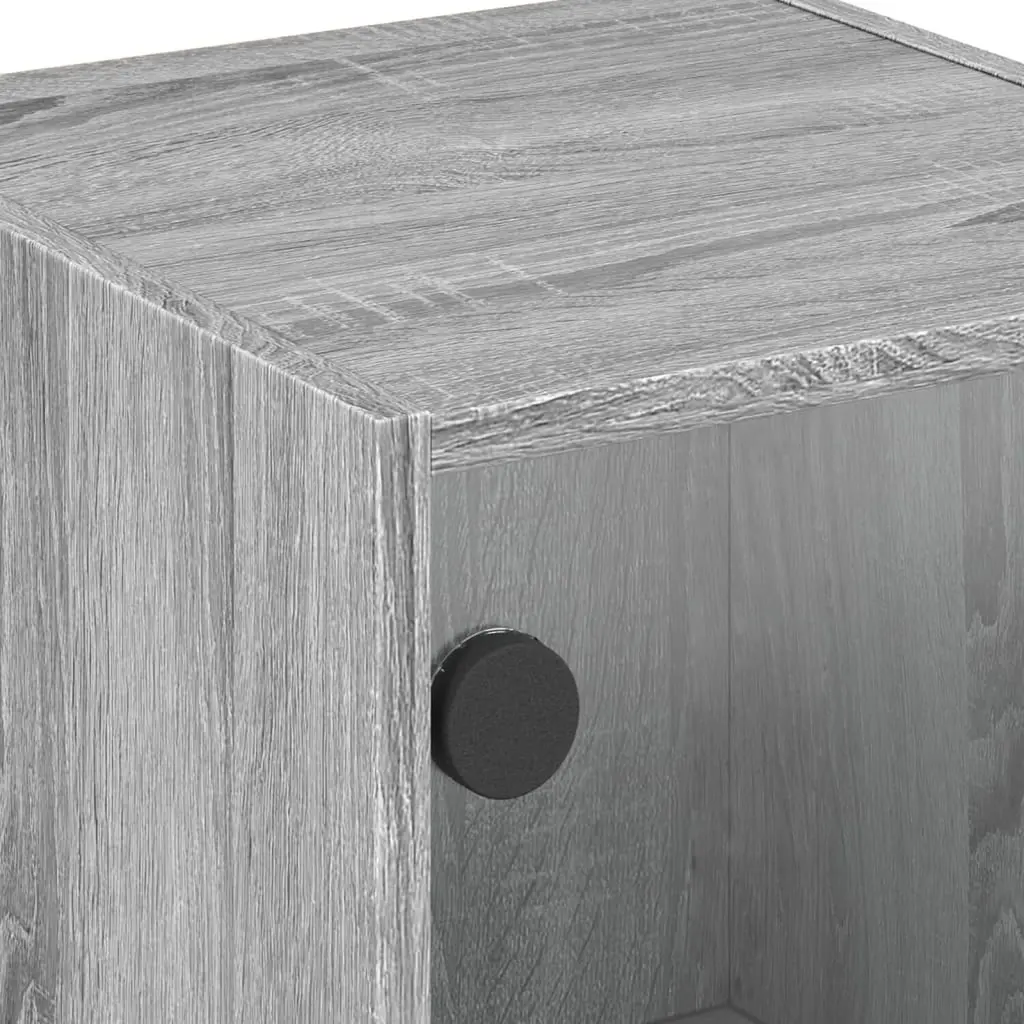Vidaxl Bedside Cabinet With Glass Door Gray Sonoma 13.8"x14.6"x16.5"