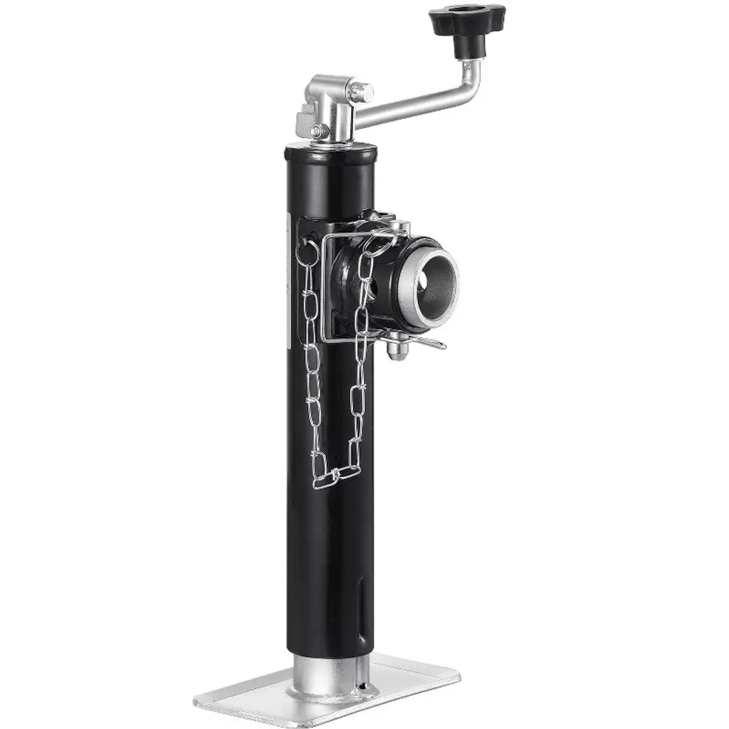 This jockey wheel contains the necessary accessories to ensure the proper parking of your trailer and increase your safety when loading and unloading.Jockey wheel: Made of high-quality galvanised steel, this jockey wheel is robust with a maximum load bearing capacity of 330.7 lb, which makes it suitable for use with small to medium trailers and caravans. The solid rubber wheel helps to easily move around your trailer when the jockey wheel is attached.Practical split clamp: The split clamp is equipped with a rubber grip on the end of the handle for easier manoeuvring. Simply screw clockwise or anti-clockwise to open or close the clamp. It is easy to open for quick removal of prop stands and jockey wheels, making your setup and dismantling process smooth and efficient.Wheel chocks: The clever design of these wheel chocks helps the wheel blocker slot into an angle with great ease. Also, the ribbed top surface allows wheels to grip on for a prolonged time, which allows you to keep the car stable for ultimate safety.