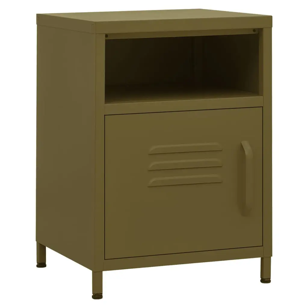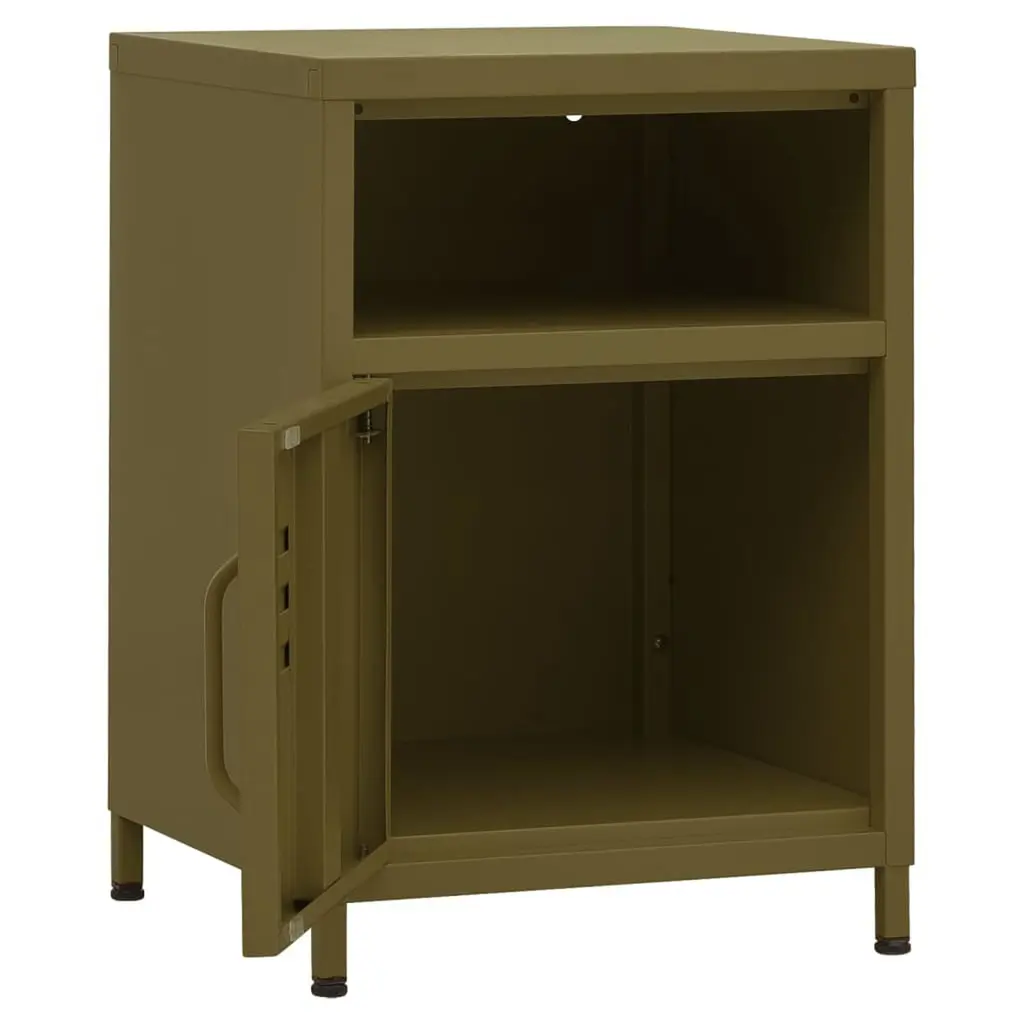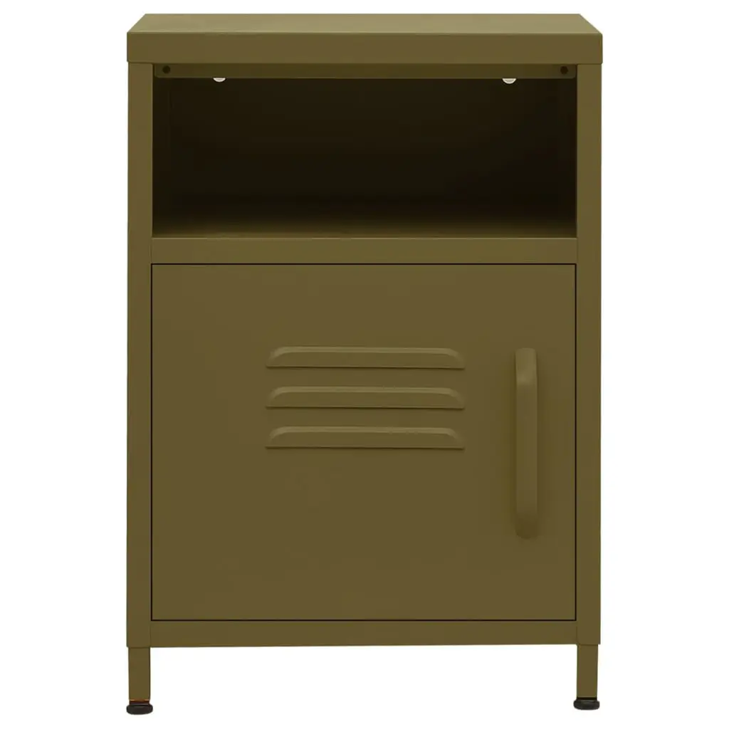 Vidaxl Nightstand Set Of 2 Olive Green Steel Small Levelers