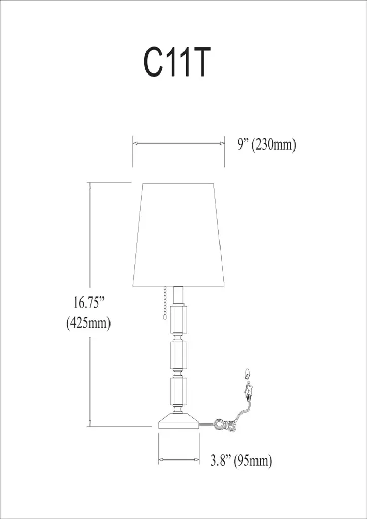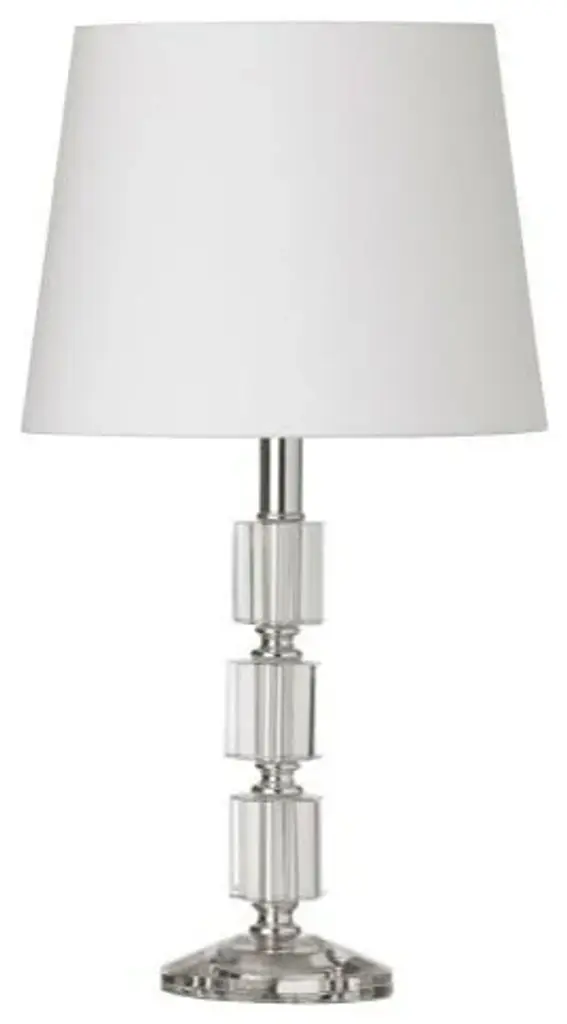 1-Light Crystal Table Lamp, Polished Chrome FinishOptical crystal lamps combine a stylish geometric design with the shimmering sparkle of optical crystals for a look that won''t go unnoticed. Polished chrome stands and frames combine with clean white shades to create a classic look of contemporary elegance. Optical crystals are incorporated into the design to add a note of opulence that enhances the effect with a touch of yesteryear''s grandeur. Optical crystal lamps are available in tabletop and floor models that can be used throughout the home to create a unified effect with options that will blend with both traditional and modern furnishings. Main Type Of Finish: Polished Secondary Material: CrystalSecondary Finish/Color: ClearType of Crystal: OpticalCanopy/Back Plate/Base Height: 1"Canopy/Back Plate/Base Diameter: 3 7/8"Canopy/Back Plate/Base Color: Crystal Installation Position: TableNo. Of Shades: 1Shade Height: 7"Shade Top Diameter: 7"Shade Bottom Diameter: 9"Shade Material Code: 790Color: WhiteShade Style: 99Diffuser No. of Bulbs: 1Total Wattage: 100WBulb 1 Amount: 1Bulb 1 Base Type: A Type - E26 BaseBulb 1 Max Wattage: 100WBulb 1 Included: NoBulb 1 Bulb 1-Light Direction: 360Bulb 2 Dimmable: NoDimmer Included: NoVoltage: 120VUL Approved: YesCSA Approved: YesRated For: Dry LocationConnection Type: Plug InType of Switch: Pull Chain On/OffLocation of Switch: On SocketLength of Electrical Cord: 6''Color of Electrical Cord: SilverTools Required: NoParts Required: NoWarranty: 1 Year