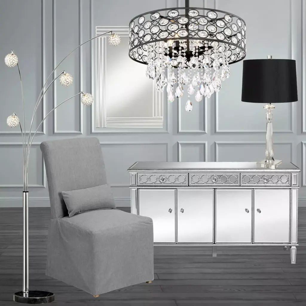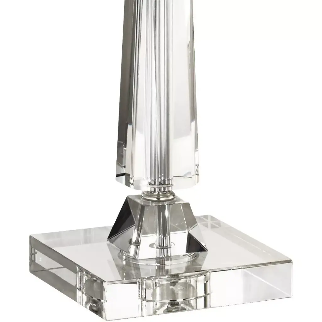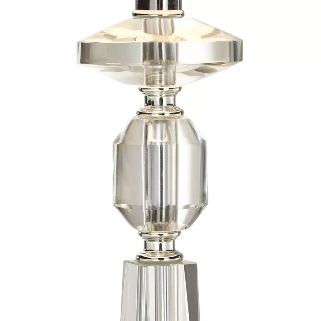 Sleek and refined, this crystal table lamp will make any decor shine with new glamour. The design is from the Vienna Full Spectrum brand and features a thin profile column base that gently tapers towards the top. The clear glass base is topped by a black tapered hardback drum shade for an added touch of elegance. The lamp also comes with a gray drum shade that you can use as well.