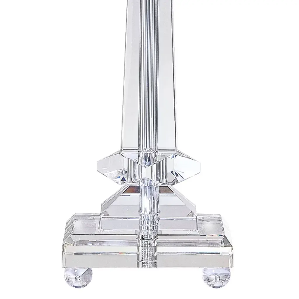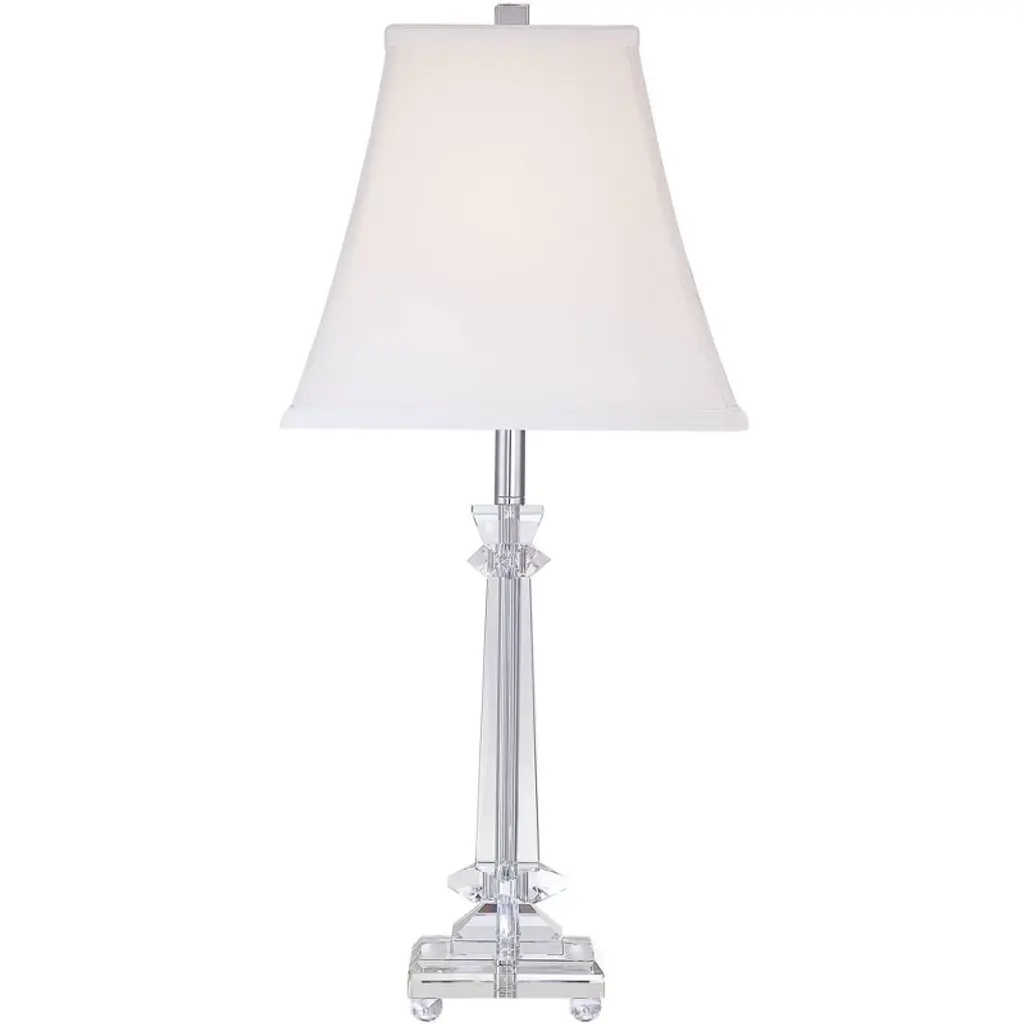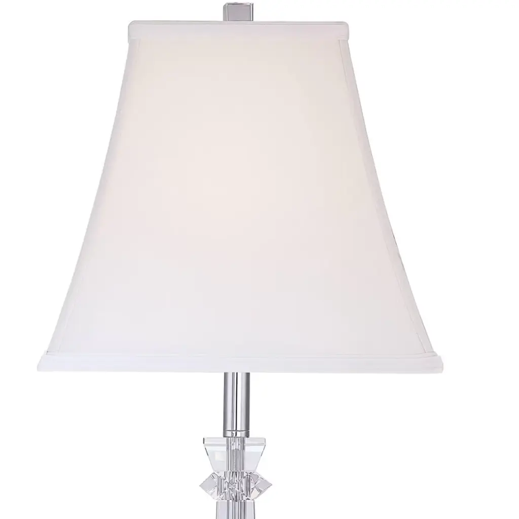 Inspired by artistry with a gleaming lightness, this set of two modern table lamps from the Vienna Full Spectrum brand of lighting updates any living space. Each lamp design features a transparent crystal glass base with an elegantly tapered column shape. Bell shades balance profiles and extend the radiant impact of lamps created to impress.