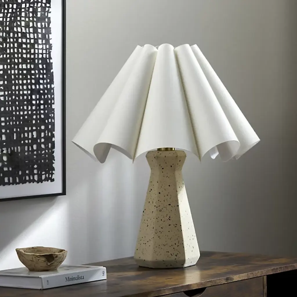 The Vigo Table Lamp from Surya marries raw concrete with soft cotton in a study of complementary opposites. The substantial concrete base provides stability while showcasing the material's natural variations and subtle surface texture. Its empire-shaped cotton shade softens the industrial foundation, directing light while maintaining a unified design approach. Perfect for spaces that blend traditional elements with contemporary materials, this lamp creates bridges between different design influences. Its cord-mounted switch offers practical control, while the durable materials ensure it will continue to serve as a faithful companion through evolving décor styles.