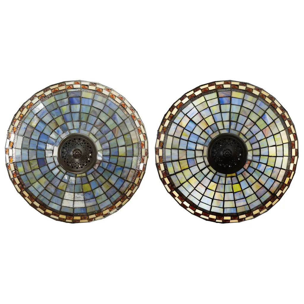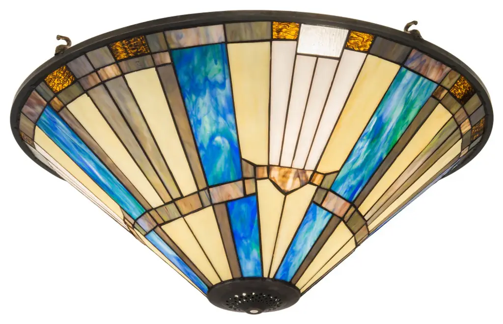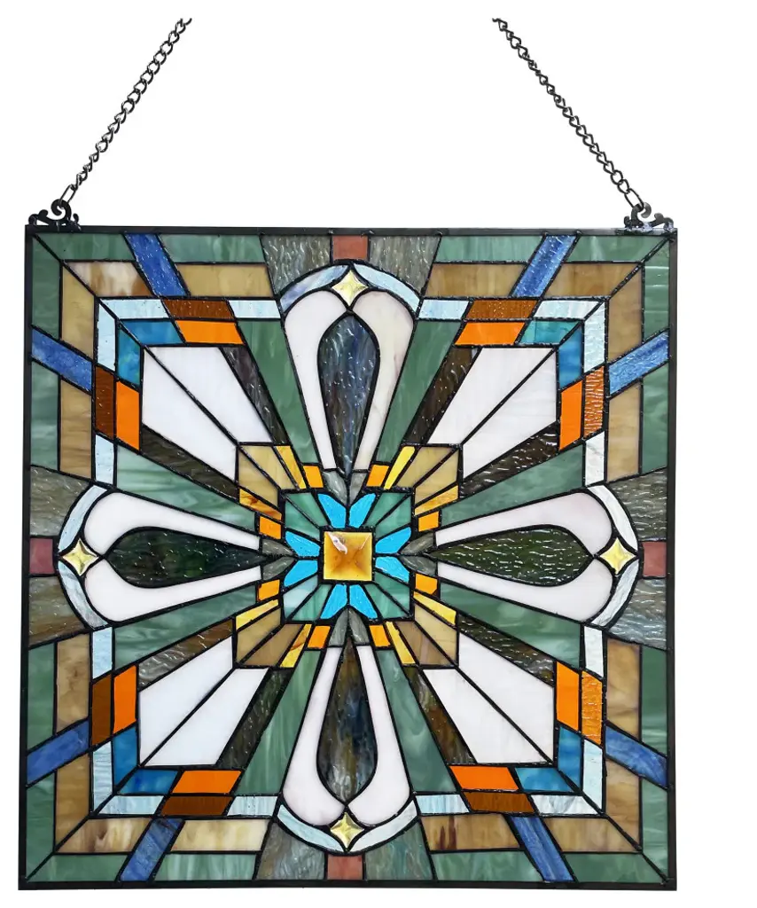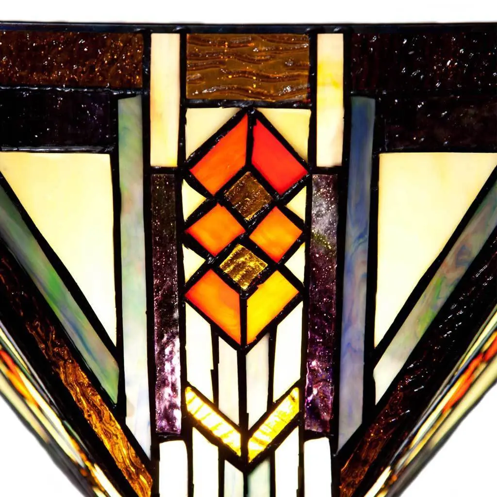 Vincent is a beautiful, stained glass double-lit table lamp in a traditional Mission style, featuring a stained glass base, 2 pull chains, and an on-cord rotary switch. This lamp would be perfect in a bedroom, living room, and dining room. The shade is hand-crafted, using the same methods developed by Louis Comfort Tiffany in the early 1900''s. This process entails using 256 hand cut stained art glass pieces, each wrapped in fine copper foil and soldered together at extremely high temperatures to form each unique piece. Exact size to the nearest inch may vary, and exact color of each glass piece may vary due to each piece being hand crafted. First image is with the light shining through, second image is with no light. Dry listed and recommended for an indoor setting.