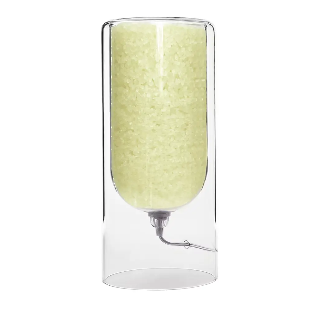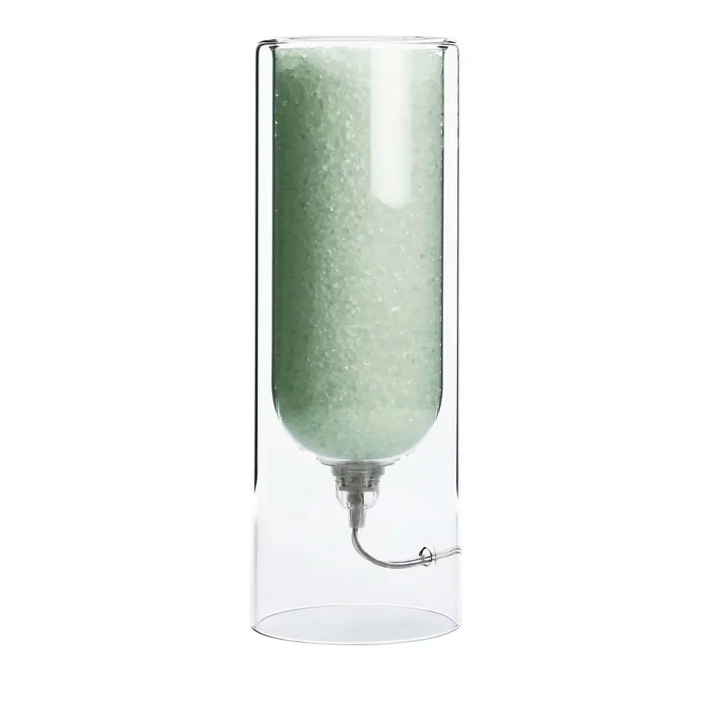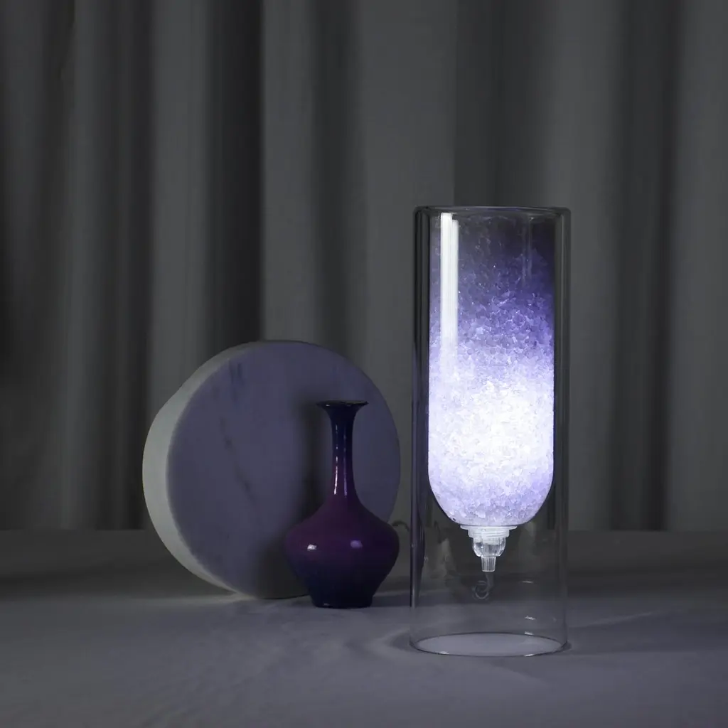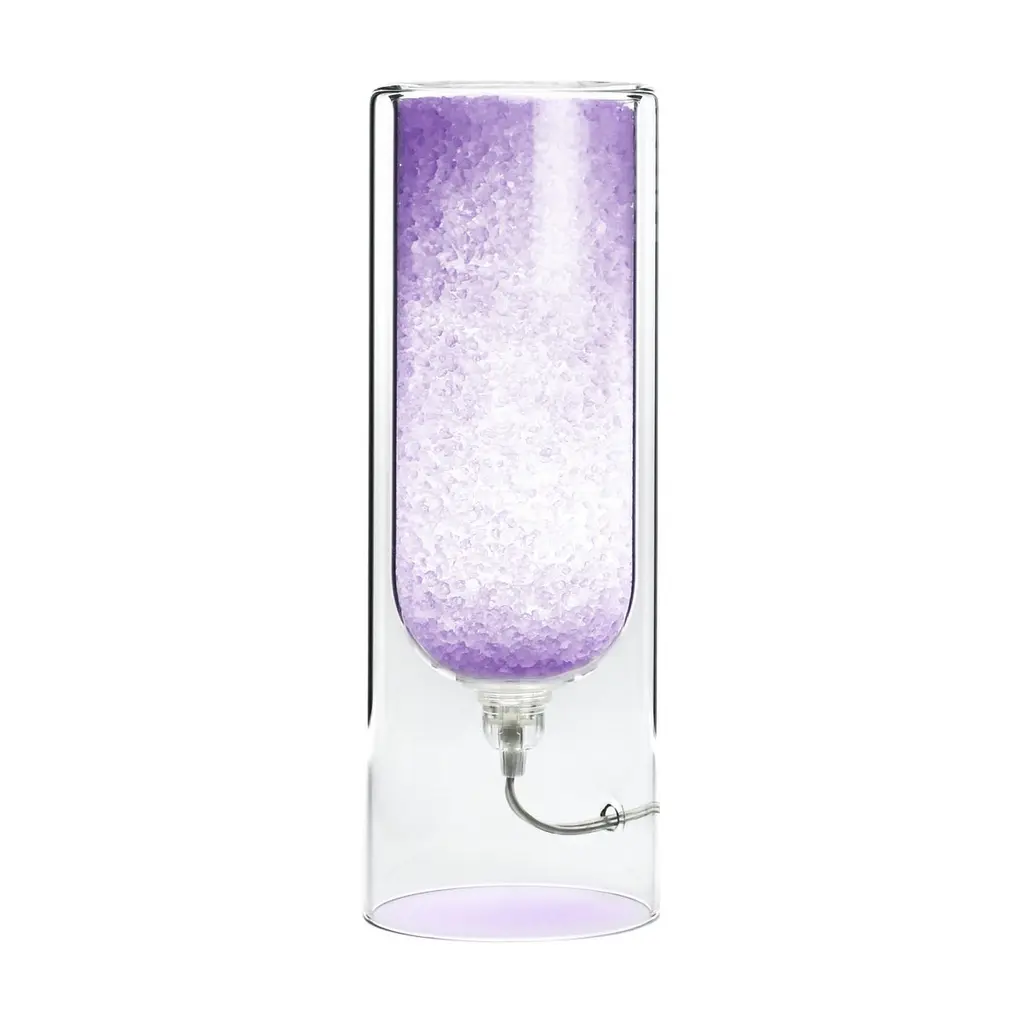 Violet Rocklumìna XXS table lamp by Coki Barbieri.Dimensions: W 12 x D 12 x H 33.5 cm.Materials: Italian rock salt crystals colored with natural pigments, mineral pigments from Italian soil and borosilicate glass.All our lamps can be wired according to each country. If sold to the USA it will be wired for the USA for instance.FEATURES4 divided components220-240V / 50 Hz ONLYLED A++ E14 4W light bulb includedsuitable for type C socketplug adapter includedRocklumìnaInnovative glass table lamp with Italian rock salt crystals winner of Green Product Award. It can be used as a diffuser of essences by putting a few drops of essential oil on the crystals. The crystals last for years, they can be replaced with those of other colors (sold separately) in a few minutes. The upper part (which always remains open) can be cleaned of dust according to theinstructions in the instructions.It naturally absorbs moisture from the air and is a highly energy efficient A++ / 4W LED.A precious objects collection made in Italy with natural and vegan origin materials, conceived by architectural and product designer Coki Barbieri and created by the local craftsmen to expand a new slow living awareness and surround oneself with a few objects, capable of staying alongside us over time.The climate emergency and increased future anxiety push our work to imagine alternative ways of living, producing, and consuming. For that Coki Barbieri uses notions of geology, chemistry, and design culture to create new products (and materials) from fragments and waste from natural products (such as stone and minerals).Coki Barbieri established her eponymous studio-workshop in Rimini in 2017, bringing to life a sustainable way of conceiving the product design for home. Nature inspires her environmentally conscious creations, which are imbued with emotional energy while maintaining their aesthetic impact and practical functionality. Coki collaborates with talented Italian craftsmen to produce one-of-a-kind homeware objects capable of unlocking new synergies between concepts, materials, and use.