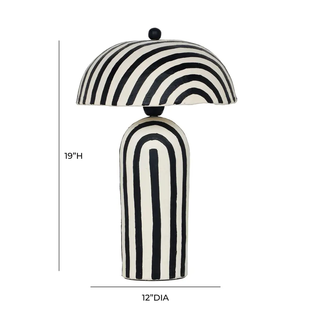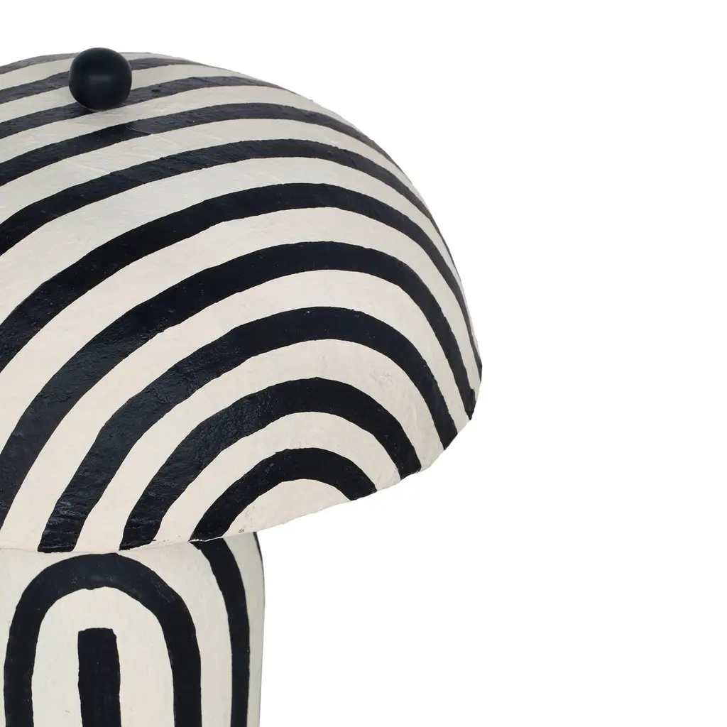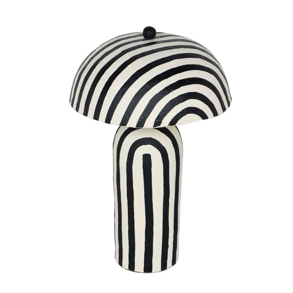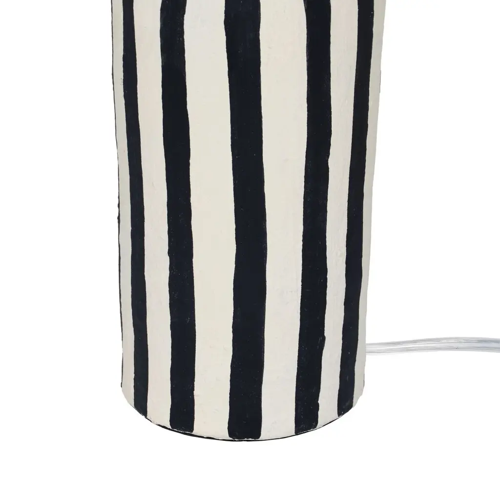 Illuminate your space with the charming Striped Papier Mache Table Lamp, featuring a beautiful bold silhouette crafted from innovative paper mache construction. The lamp's punchy stripes add a playful touch, complemented by a domed lampshade and an adorable orb finial. This lamp effortlessly adds striking personality to any space, making it a delightful and stylish accent for your home.