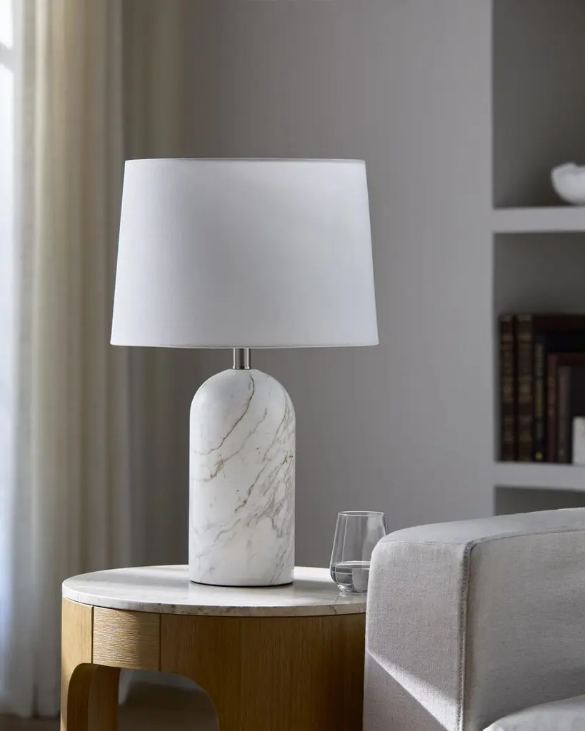 Discover the Vionnet accent table lamp, where Arts & Crafts Traditional style meets modern sophistication. This striking 24-inch tall lamp boasts a robust marble body and an iron finial, offering both durability and elegance. Its refined linen shade provides a warm, inviting glow, perfect for enhancing any room with a touch of class. Effortlessly maintain its pristine look by simply wiping it with a dry cloth. Transform your decor with the timeless design and practical function of the Vionnet accent table lamp.