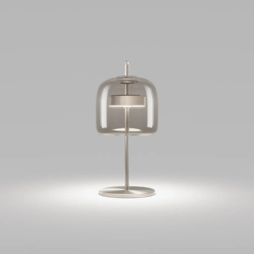 Vistosi Jube Table Lamp In Smoky Transparent Glass And Matt Steel Finish