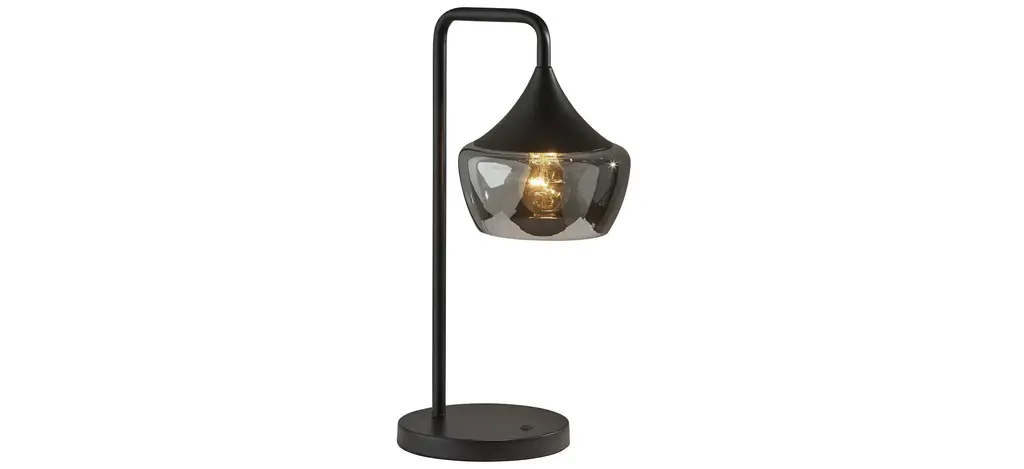 Vistosi Puppet Table Lamp In Smoky Transparent Glass And Matt Black Frame