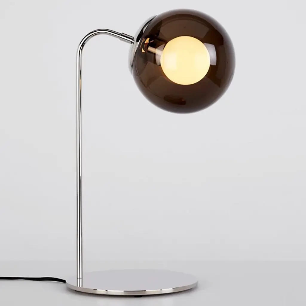 Collection of lamps with a blown and irregular striped glass diffuser. The three sizes of the spheres and the different cable heights are designed to create elegant compositions. The chandelier version allows to fix the diffusers with steel cables to the ceiling, creating different games.Specifications:Material: GlassLight source: G9 ULNo of bulbs: 1×60W G9 UL (120V/60HZ)Dimmer: No DimmYear: 2015Glass finish: Smoky TransparentFrame finish: Matt Black 1Dimensions: Ø 16 x 40 H cmAvailable in other glass finish options: Amber Transparent, White Shaded, Crystal TransparentAvailable in other frame finish option: Glossy chromePlease inquire about customization options.