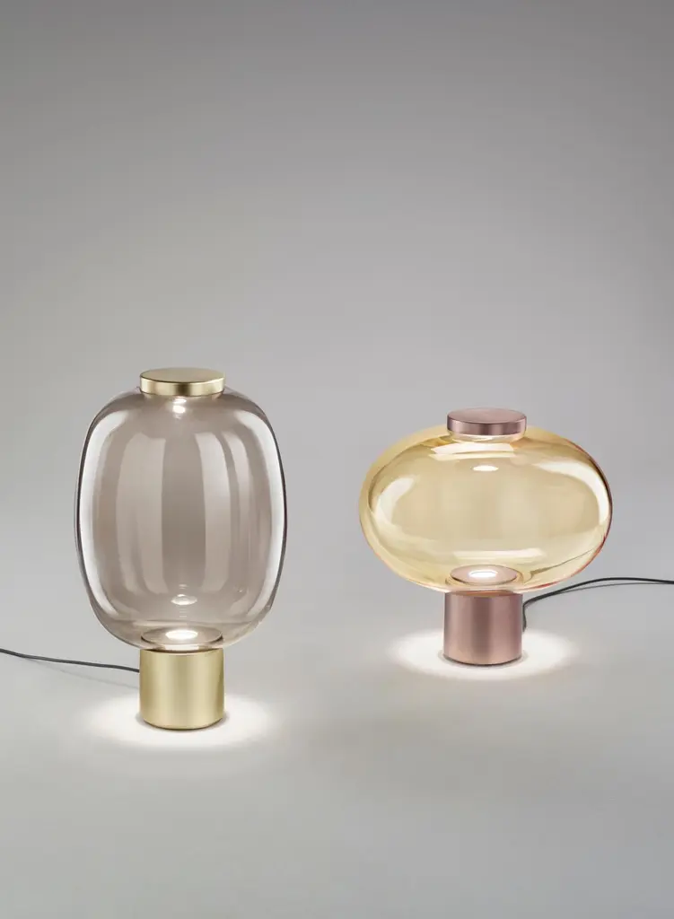 Vistosi Riflesso Table Lamp In Crystal Transaprent Glass And Matt Gold Frame