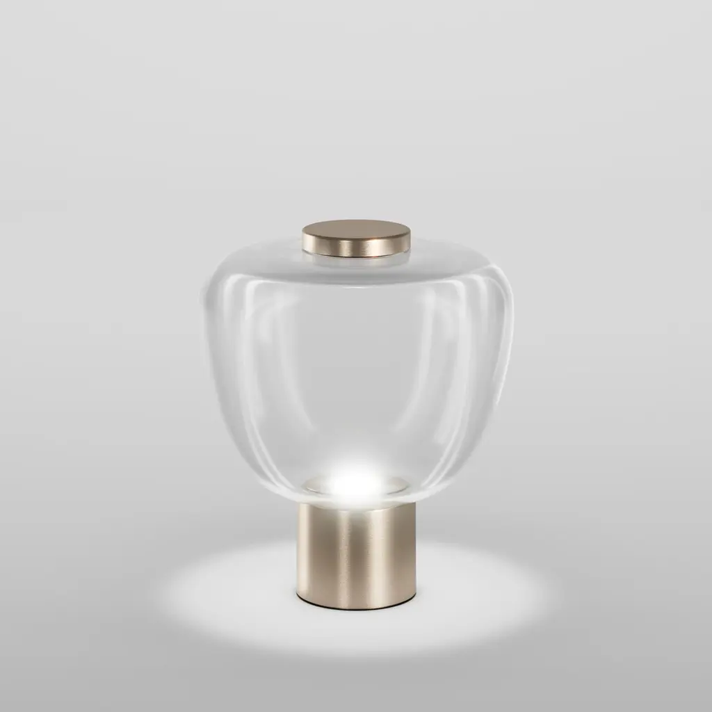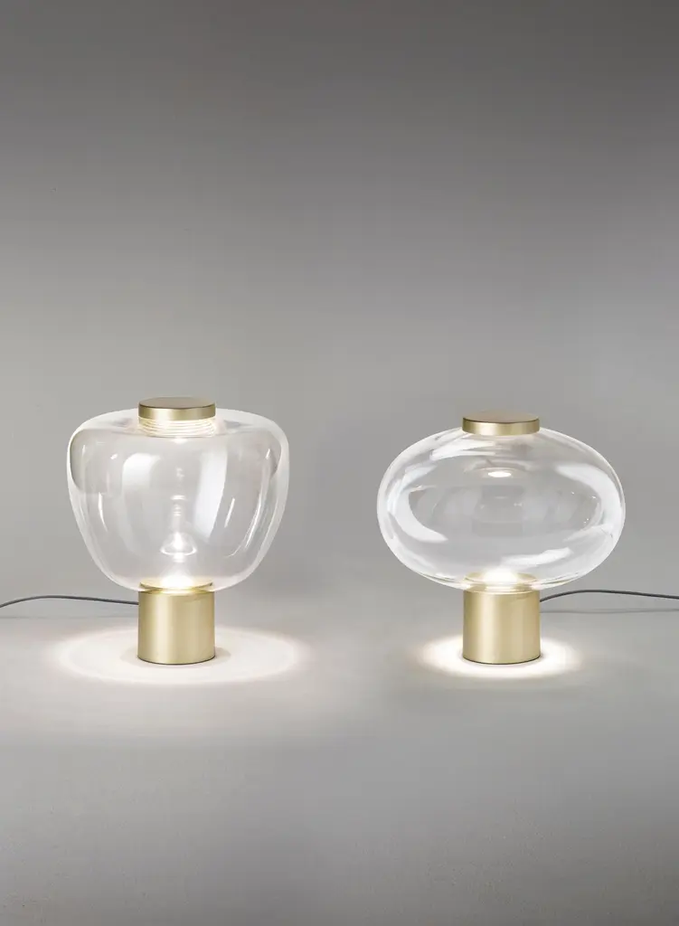 Vistosi Riflesso Table Lamp In Crystal Transaprent Glass And Matt Gold Frame