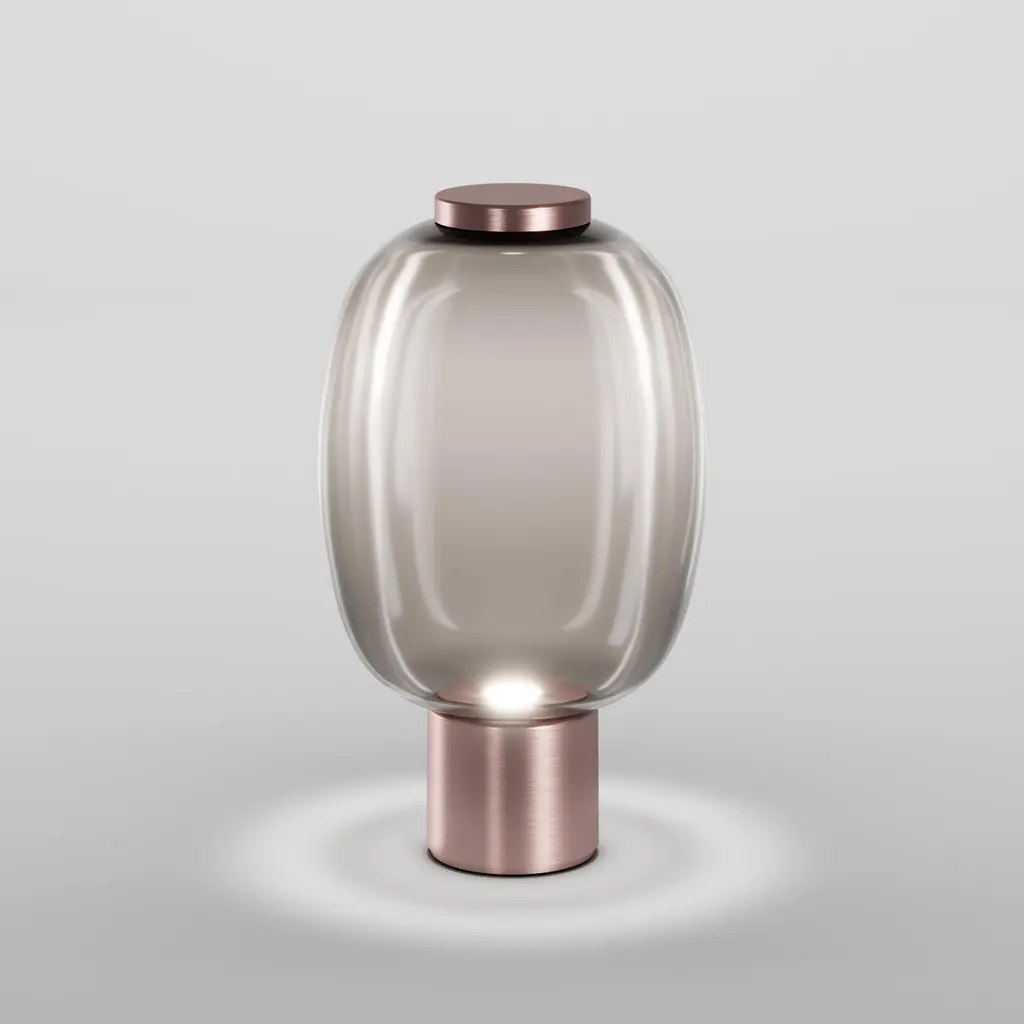Vistosi Riflesso Table Lamp In Smoky Transaprent Glass And Matt Copper Frame