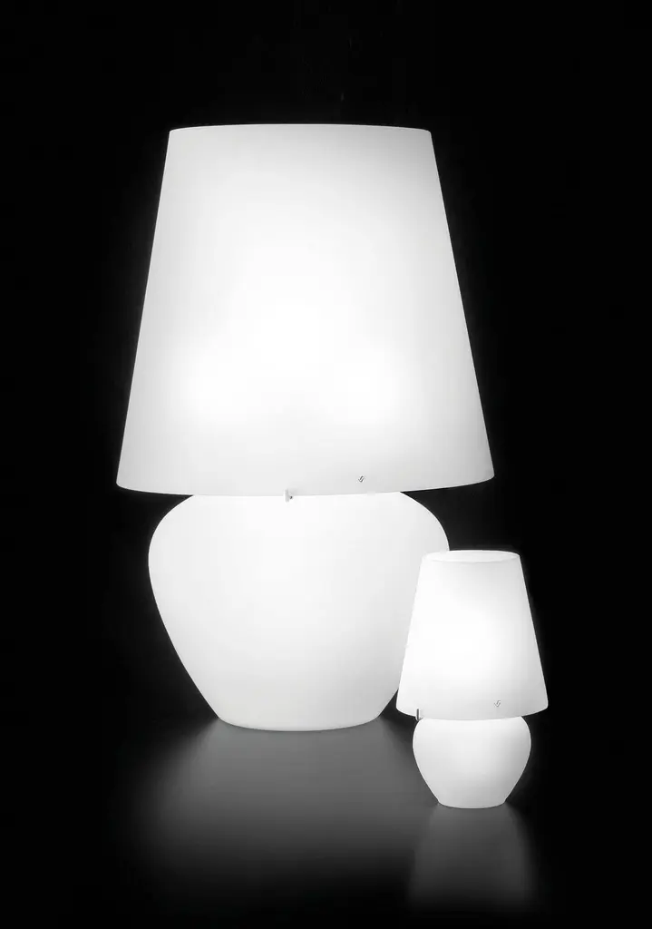 A collection of table lamps, pendants and floor lamps with a recognizable design that maximizes the quality of the matt-finish glass. Specifications: Light source: E12No of bulbs: 1×40W E12 + 1×25W E12Dimmer: DIM 4Frame finish: Glossy white.