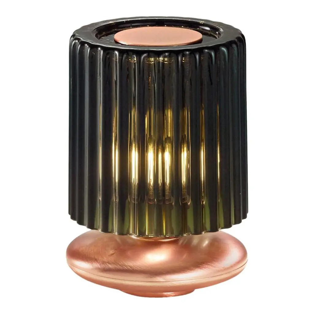 The “technicity” of the metal element combined with the blown glass diffuser gives Tread an “Industrial” style. An object reminiscent of vintage electrical equipment for its particular shape, in which the finned heat sink, combined with blown glass, becomes a distinctive element. Tread creates an avantgarde and stylish atmosphere combing crystal, smoke, burned earth and old green glass with copper, gold and bronze matte finishes.Specifications:Light source: E12No of bulbs: 1 × 40 W E12Dimmer: No DIMFrame finish: Matte bronze.