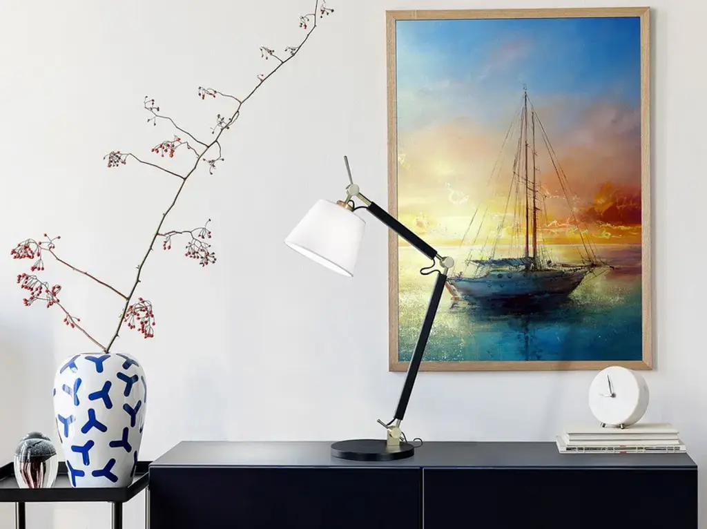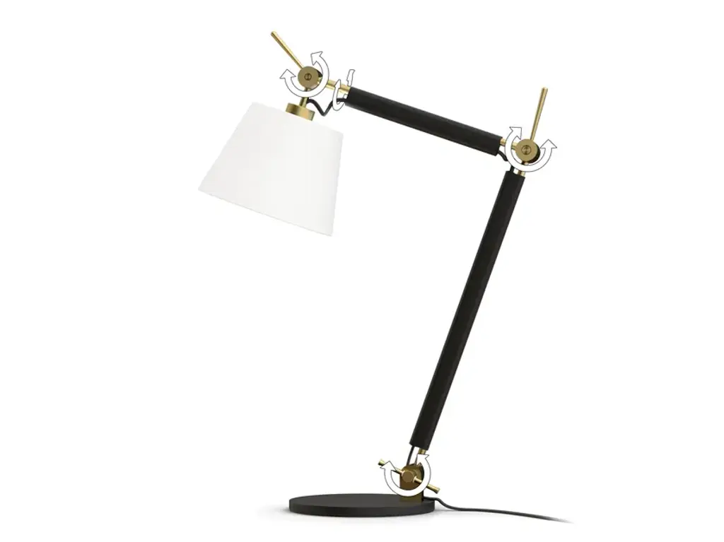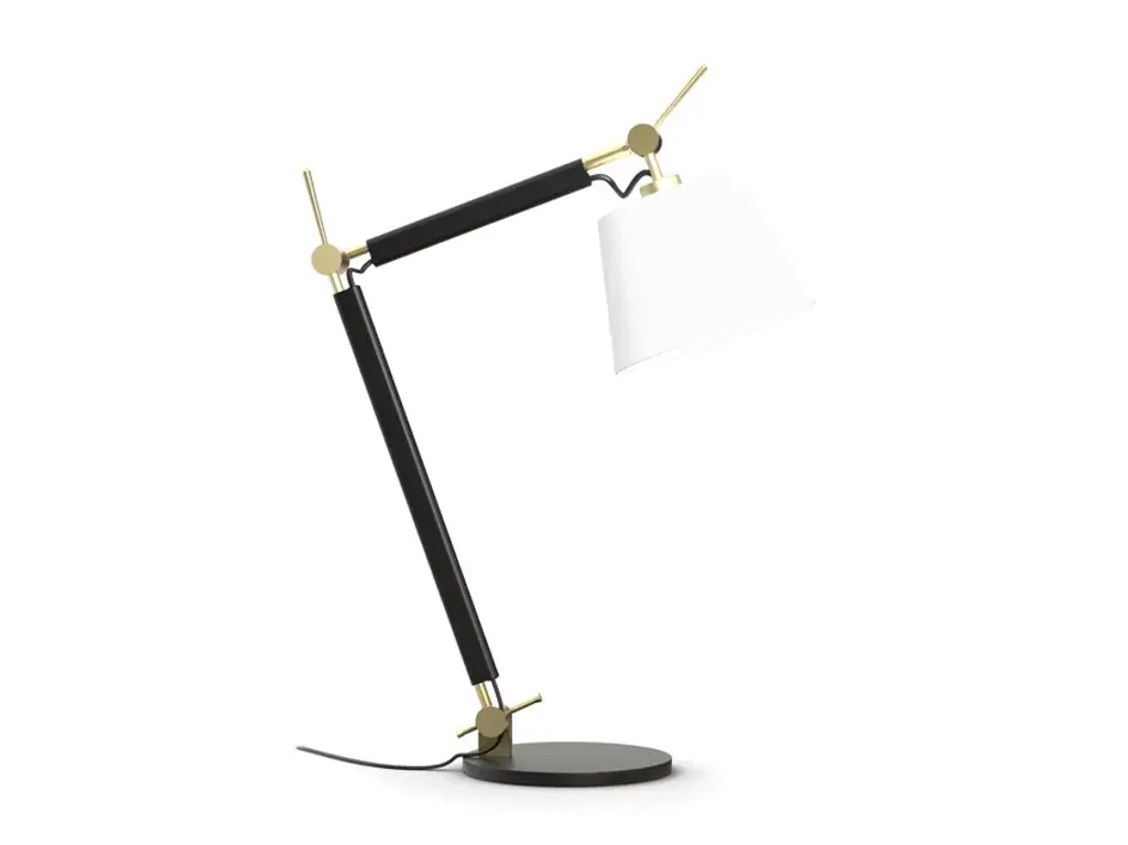 VISUAL table lamp combines stylish design and practicality, creating a versatile lighting solution for any space. This lamp is an ideal choice for a desk, living room, or bedroom, offering both functionality and aesthetics. Made from high-quality materials, Visual table lamp is durable and long-lasting, making it a reliable companion for home or office lighting. Bulb: 1 x E27, max 40 W (bulb not included) Materials: Metal / brass / fabric
