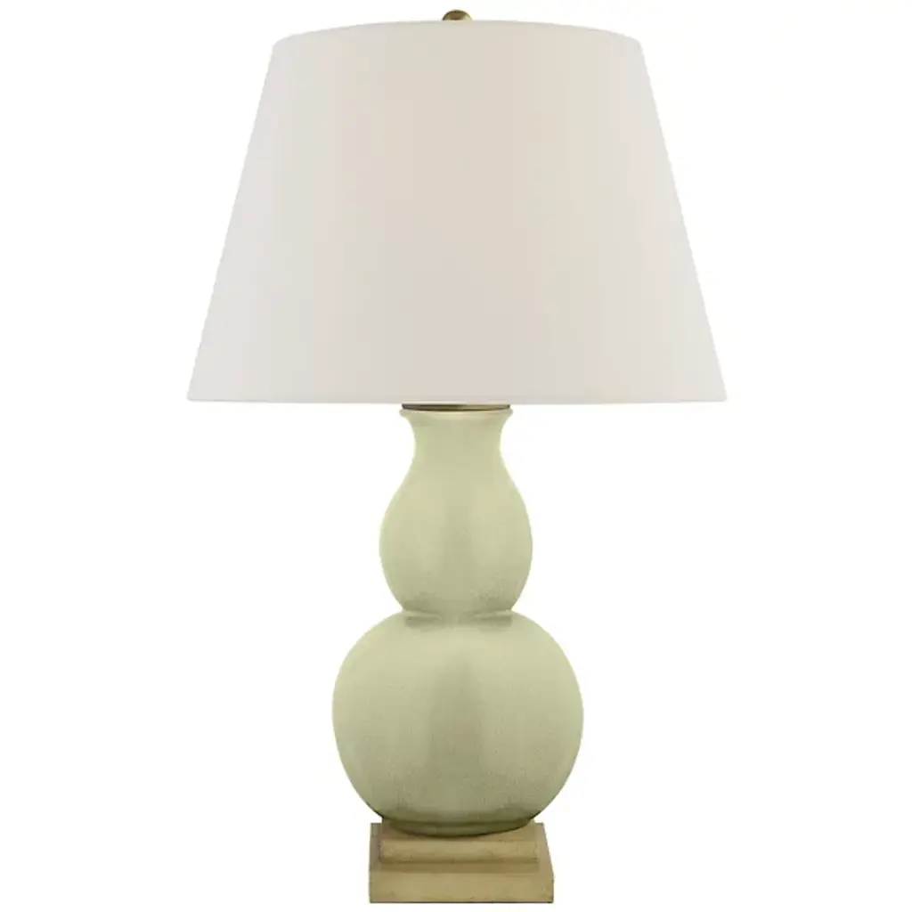Visual Comfort Deauville Modern Celadon Crackle Ceramic Linen Shade Table Lamp